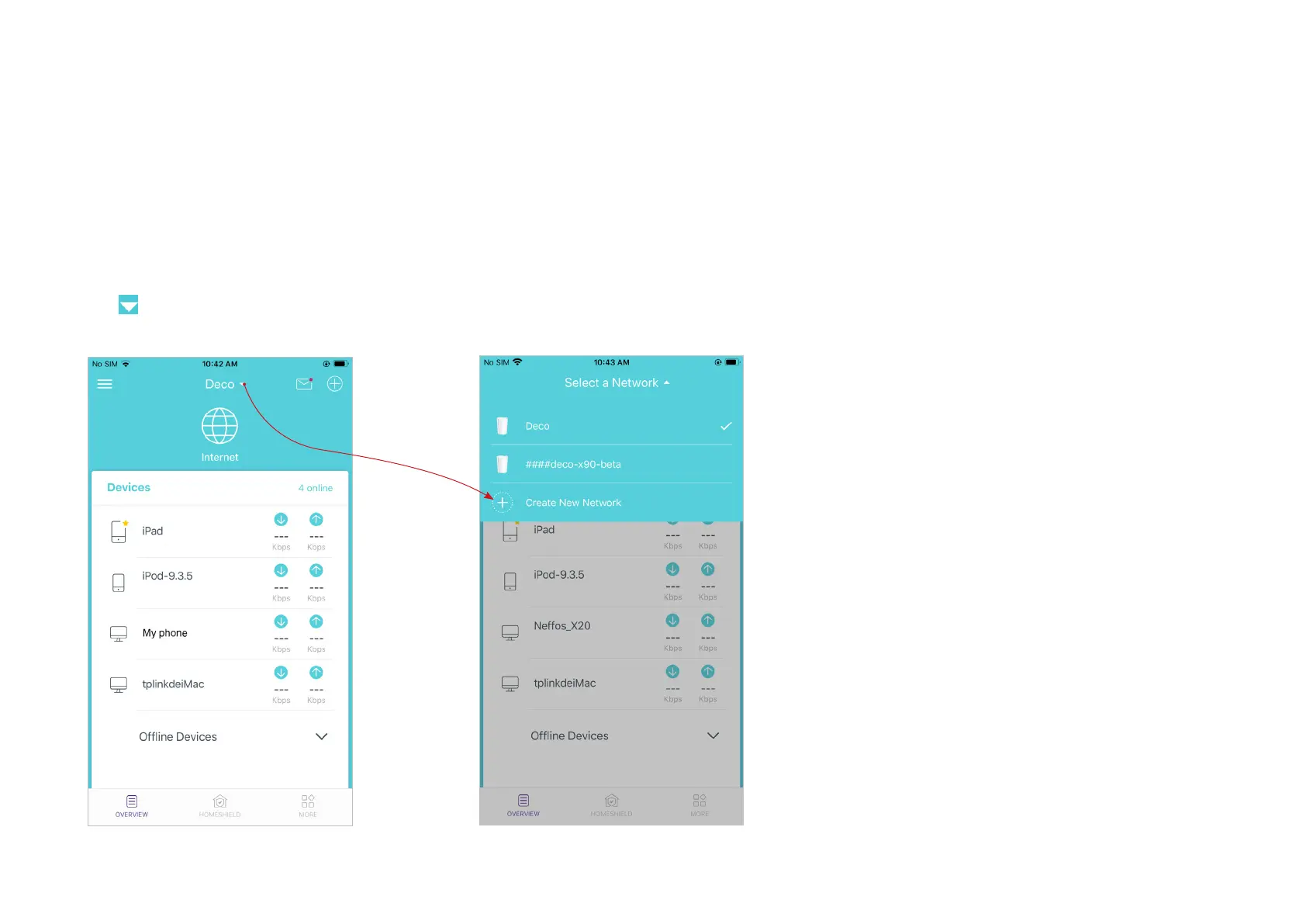 On the Deco app, you can create different Deco networks bound to your TP-Link ID, and manage them conveniently from the Deco app with one