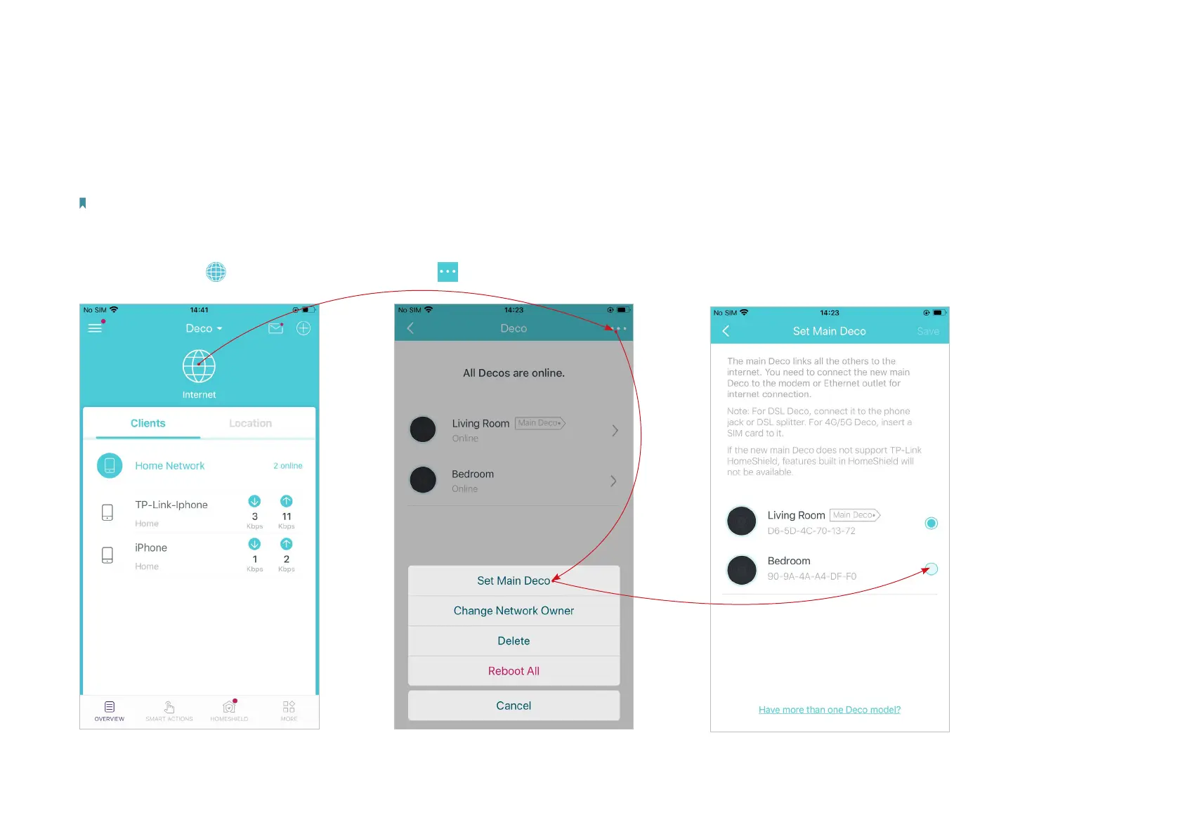 After setup, you can replace the main Deco with any satellite Deco without resetting or reconfiguring the whole network.