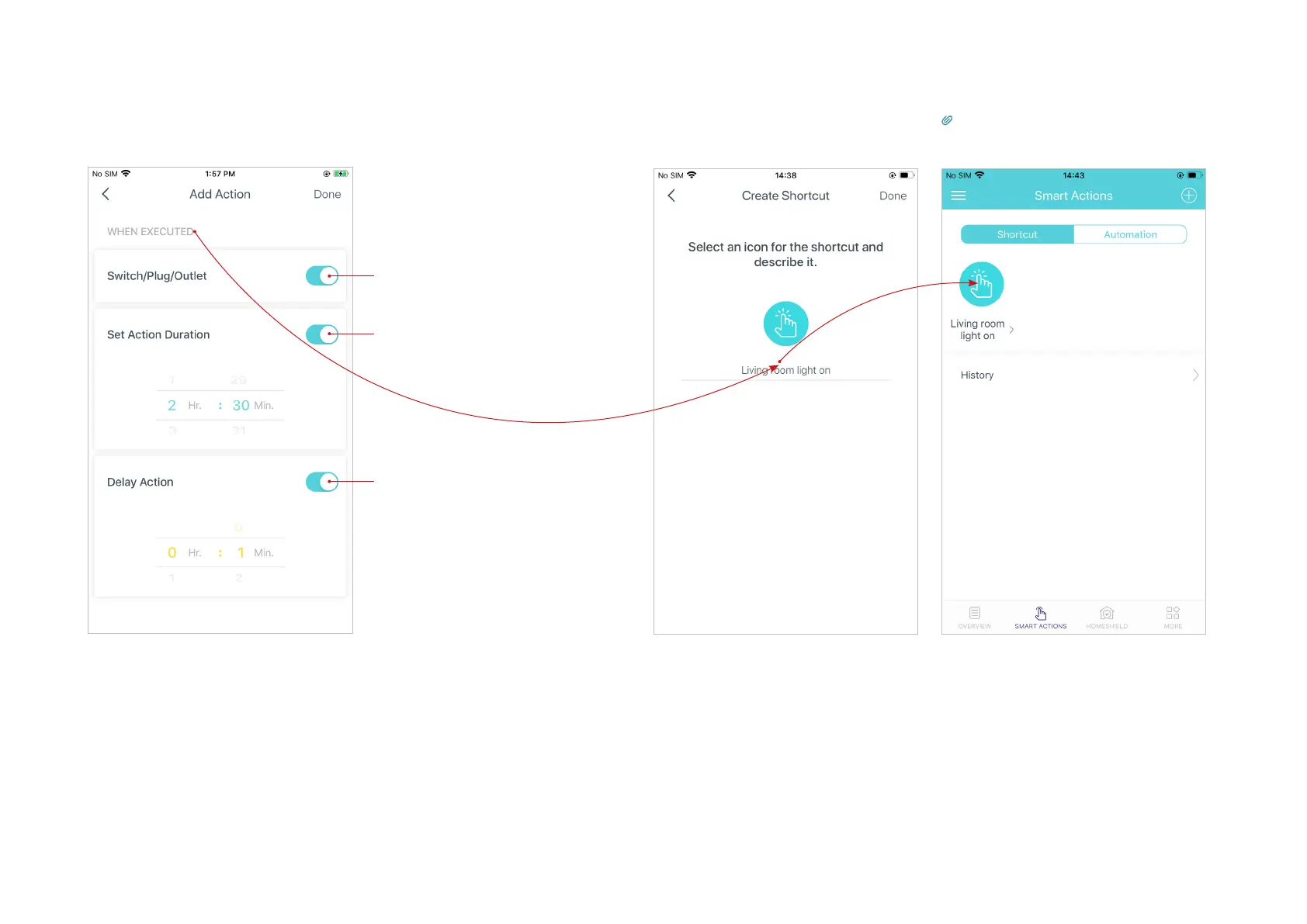 below then the living room light will turn on 1 minute after you tap the