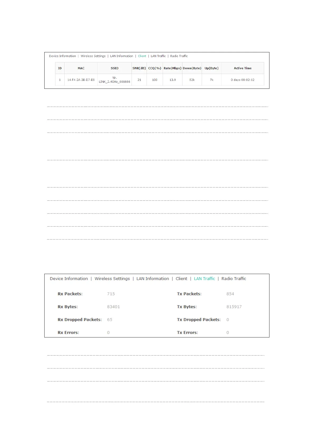 Click LAN Traffic and you can monitor the data transmission status of the LAN port.