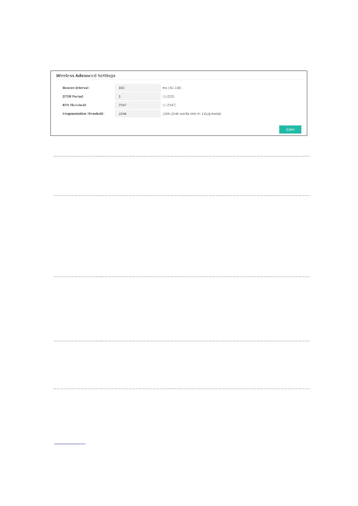 same as Beacon Interval. An excessive DTIM period may reduce the performance