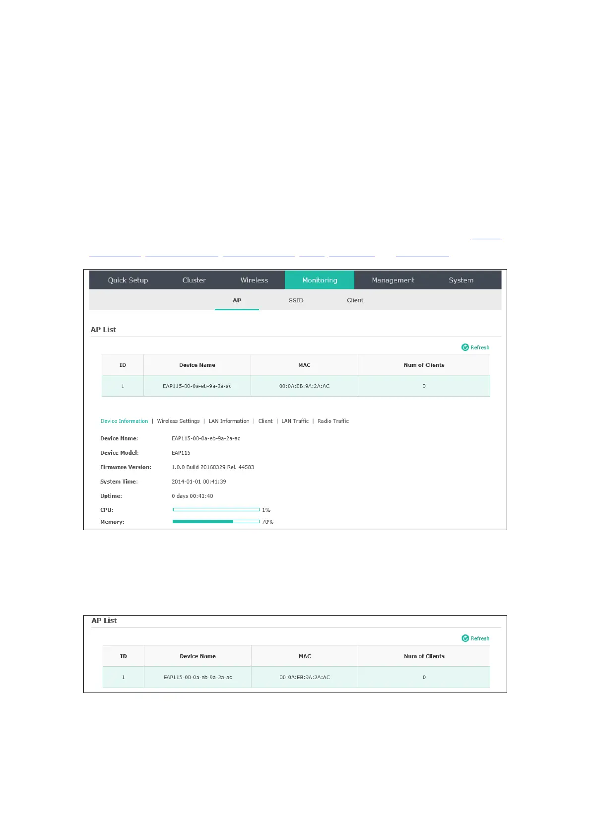 of the EAPs, the number of clients or the corresponding parameters of a standalone AP. Select an
