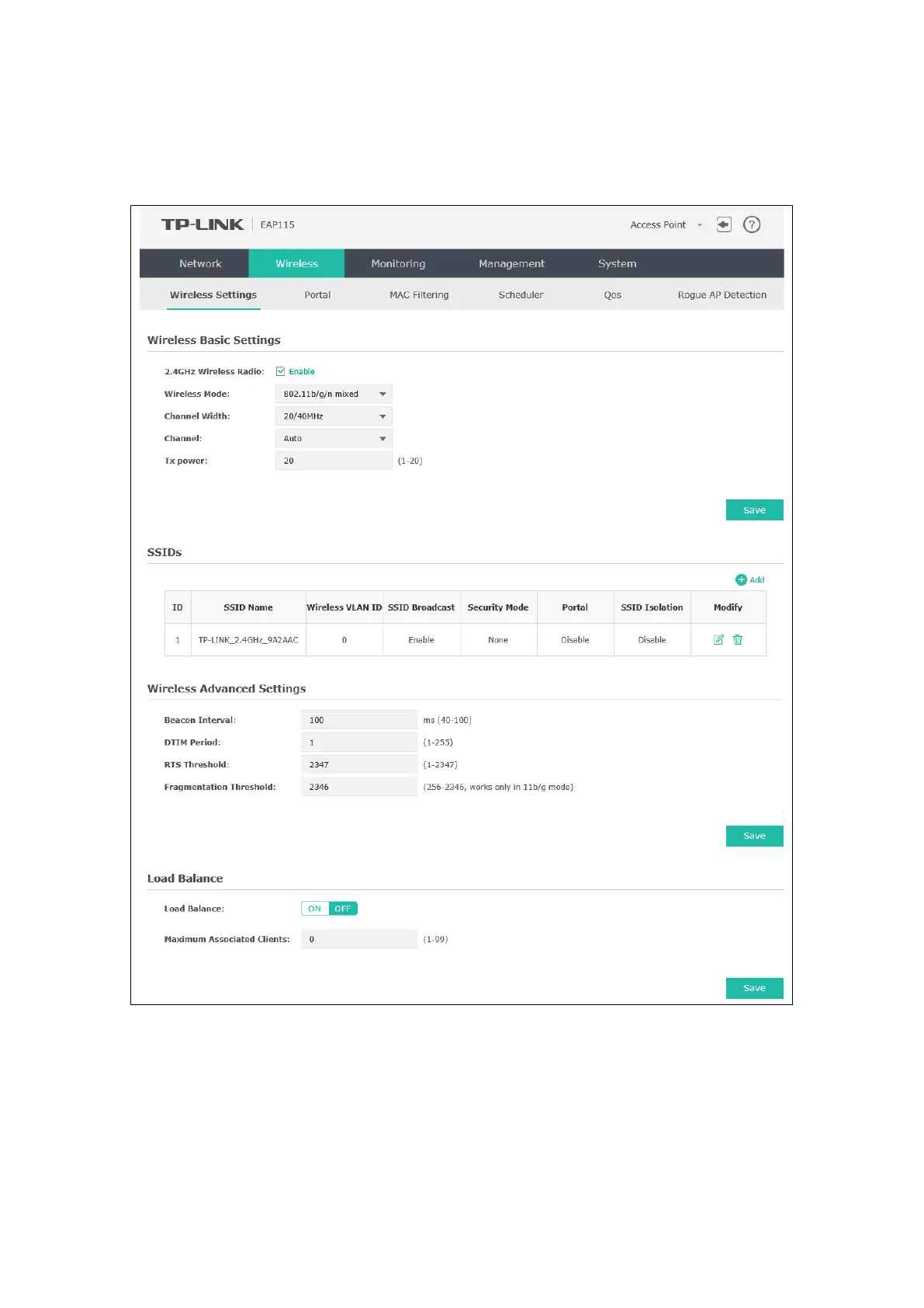 TP-Link EAP115 - Wireless Settings