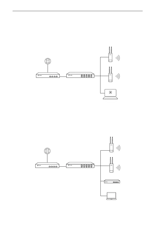 De hardware controller kan op hetzelfde of op een ander subnet staan als de AP’s�