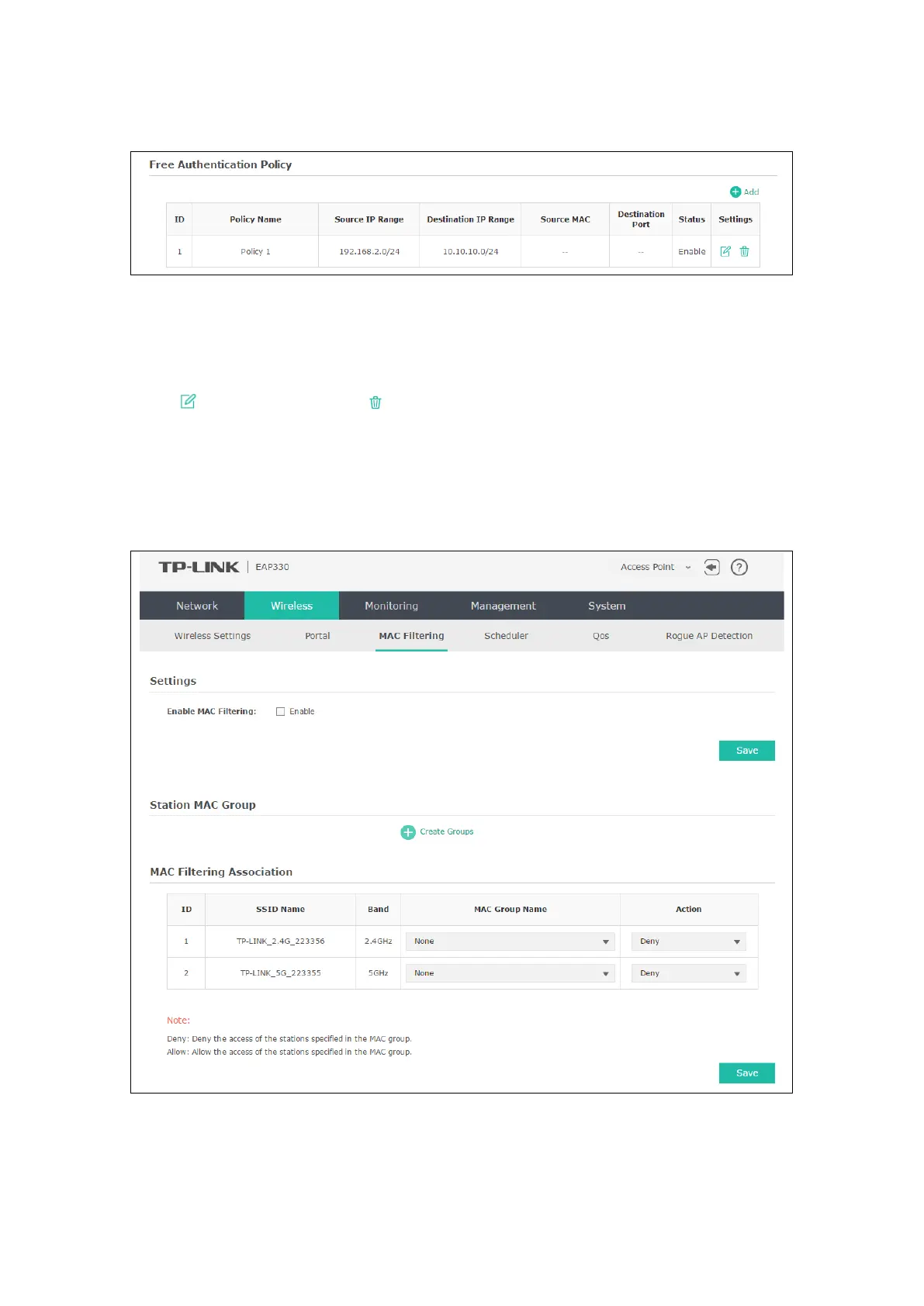 MAC Filtering uses MAC addresses to determine whether one host can access the wireless