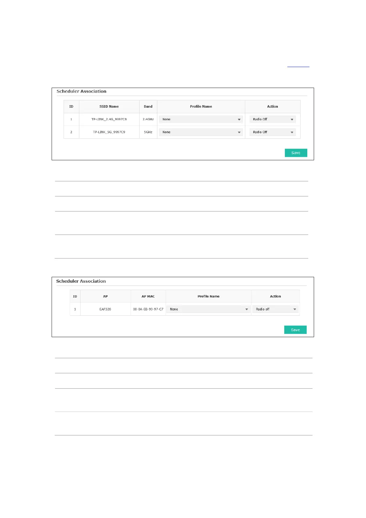 Action: Select Radio On/Off to turn on/off the wireless network during the time