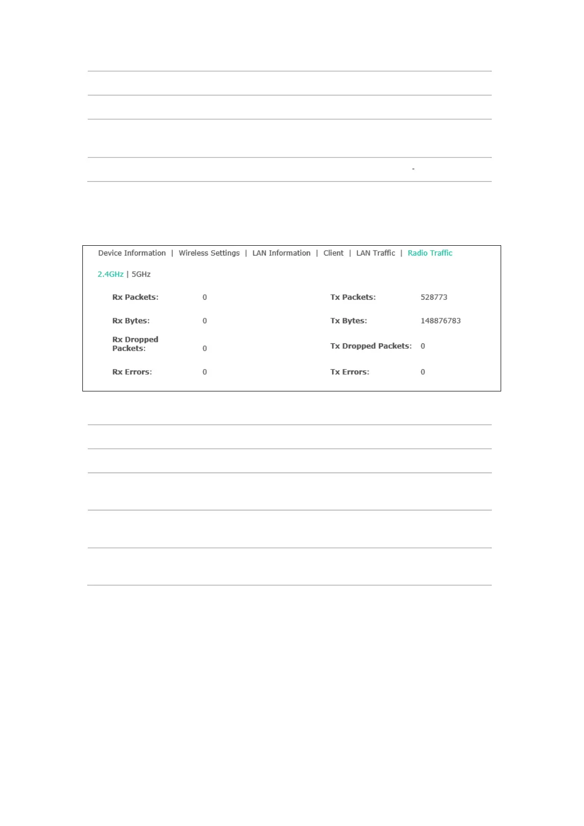 Click Radio Traffic and you can monitor the data transmission status of the wireless network.