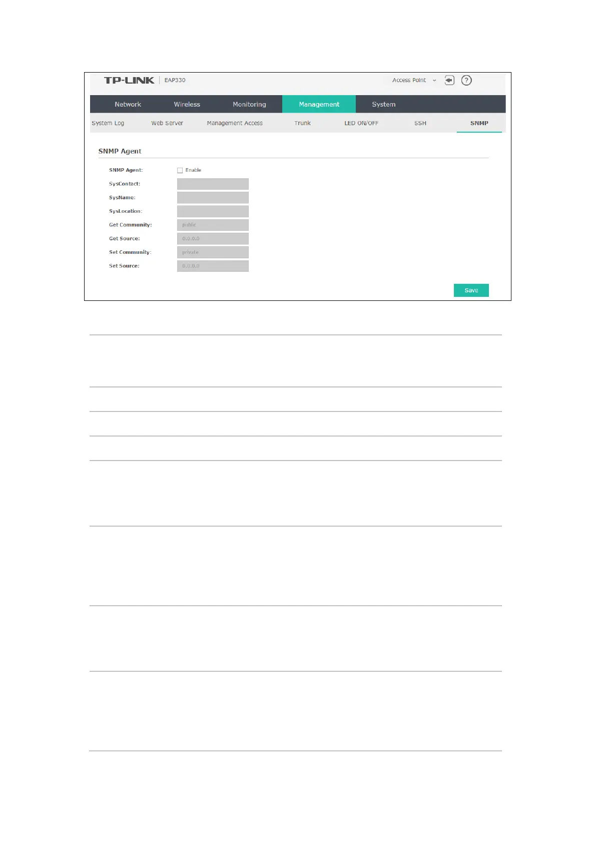 Enable SNMP Agent and the SNMP Agent will collect the information of this