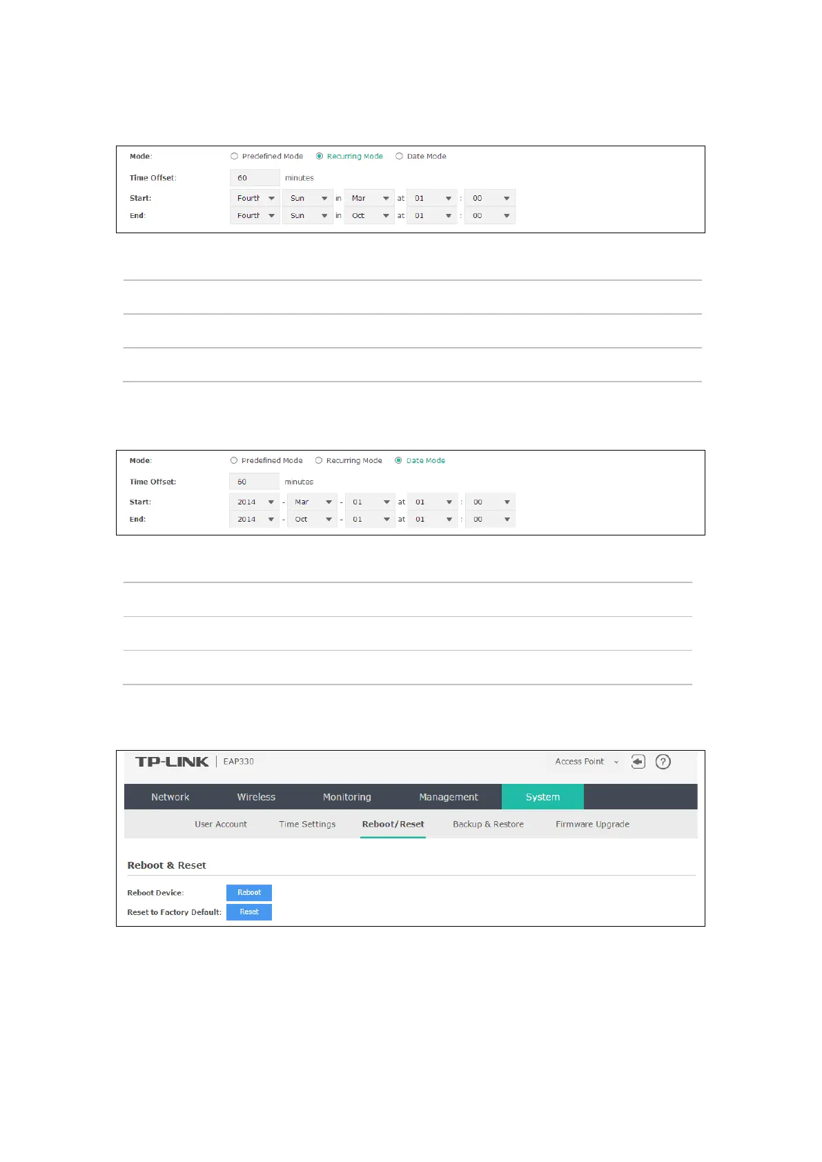 Click Reboot to restart the device. Click Reset to restore the device to factory default settings.