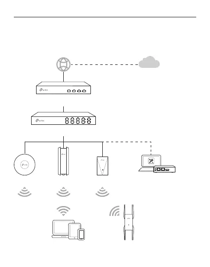 Toliau pavaizduota tipinė AP skirta tinklo topologija.
