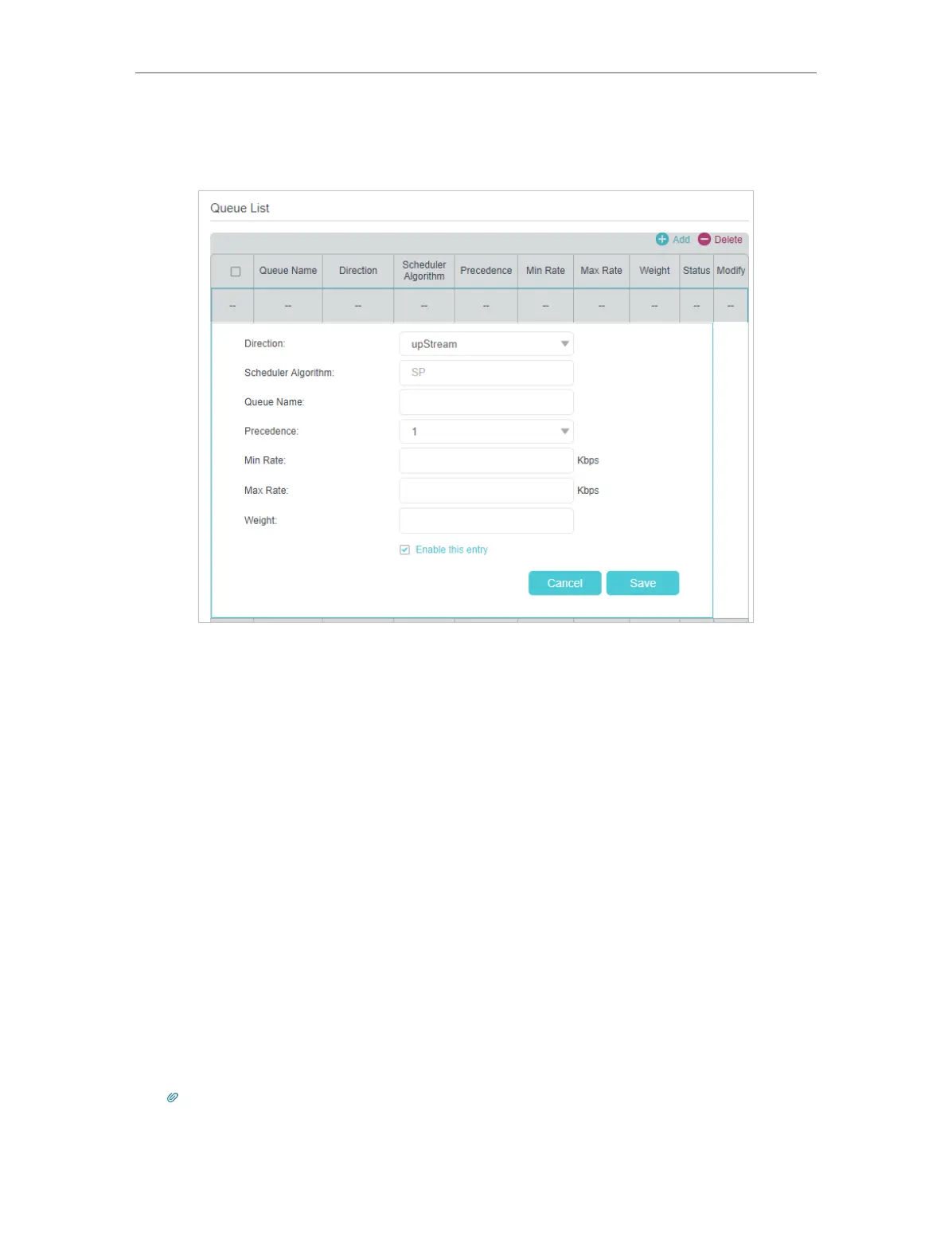 • Min Rate: Set the minimum bandwidth guaranteed according to the precedence.