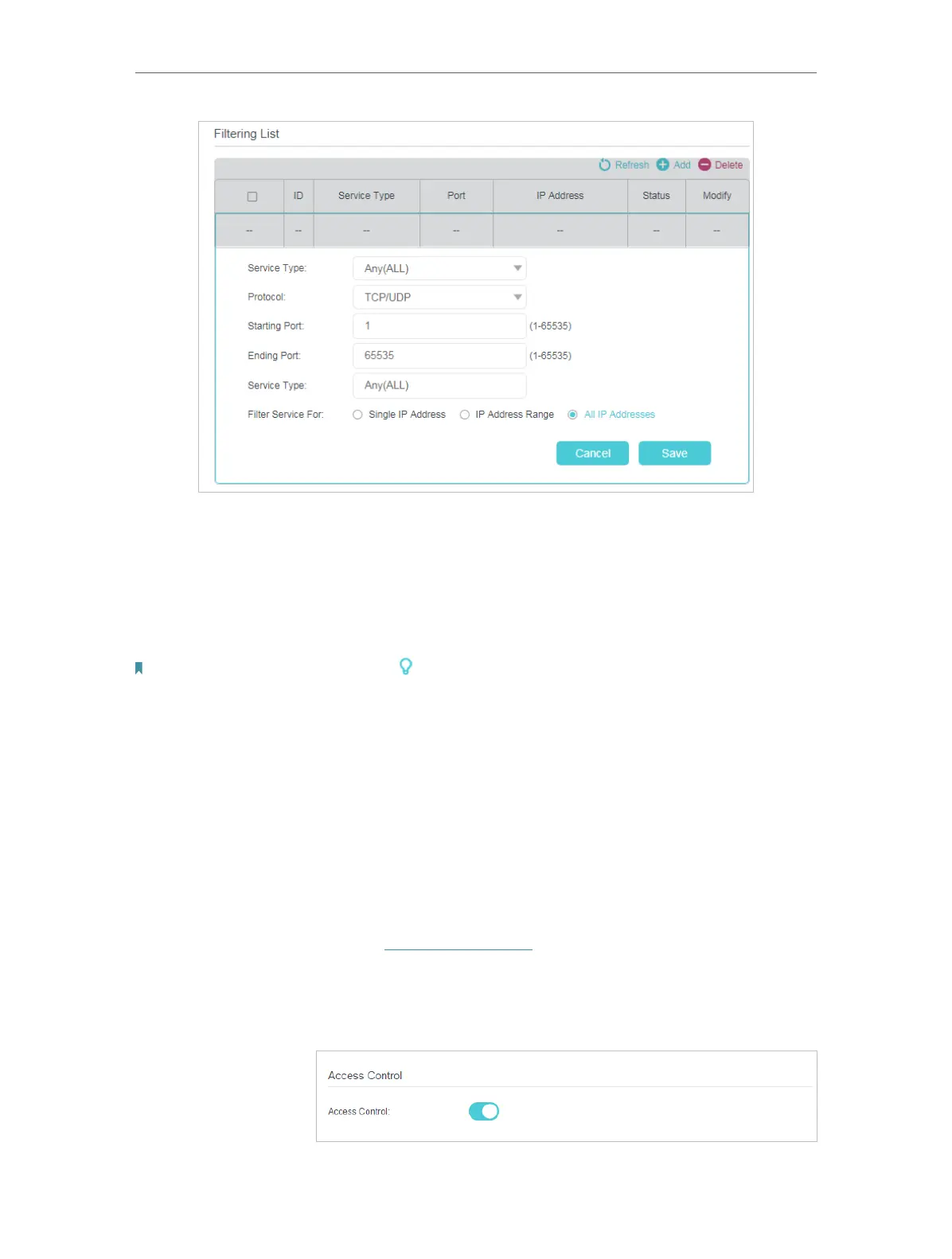 Access Control is used to block or allow specific client devices to access your network