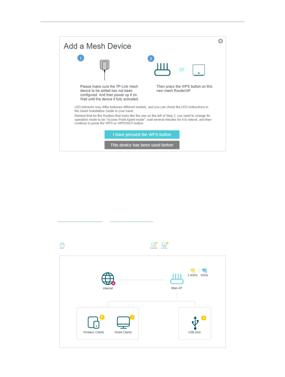 to view all mesh devices, and click to view all connected clients.