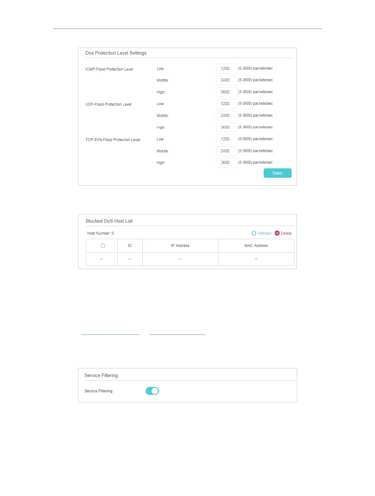 2. The protection will be triggered immediately when the number of packets exceeds the preset threshold value,