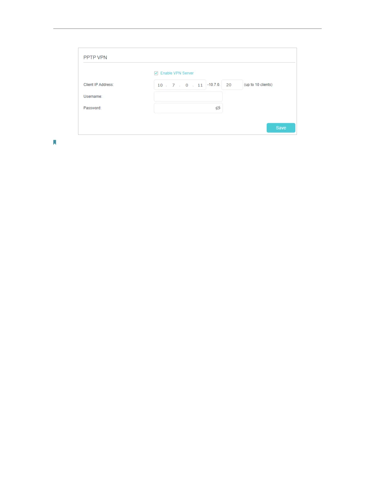 4. Enter the Username and Password to authenticate clients to the PPTP VPN server.
