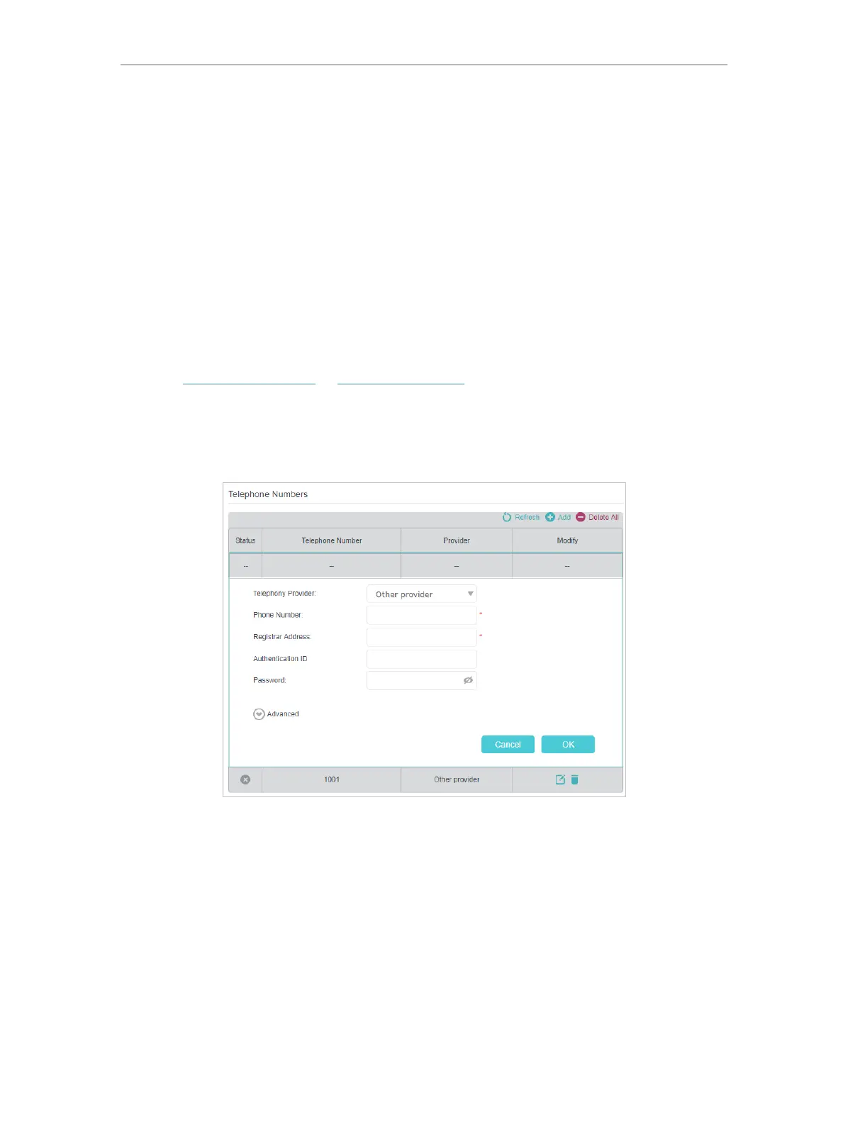 2. Go to Advanced > Telephony > Telephone Number to open the configuration page.