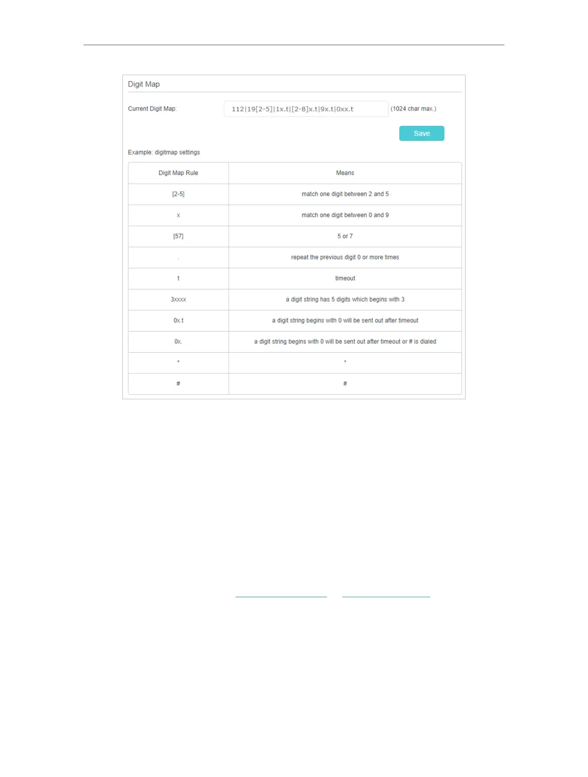 3. Save the settings. Now, only the numbers matching the digit map can be dialed out.
