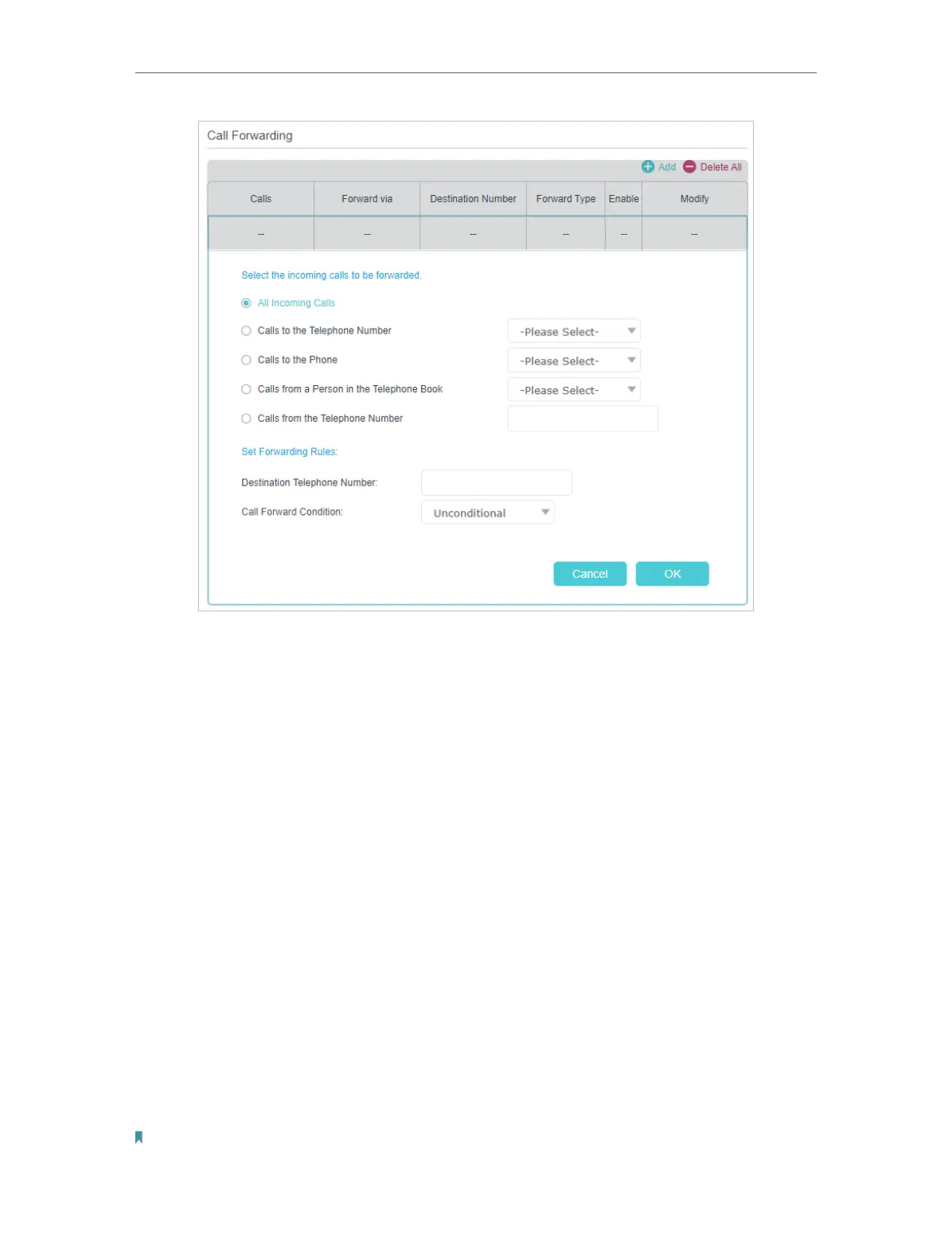 All Incoming Calls: If this option is selected, all incoming calls will be forwarded.
