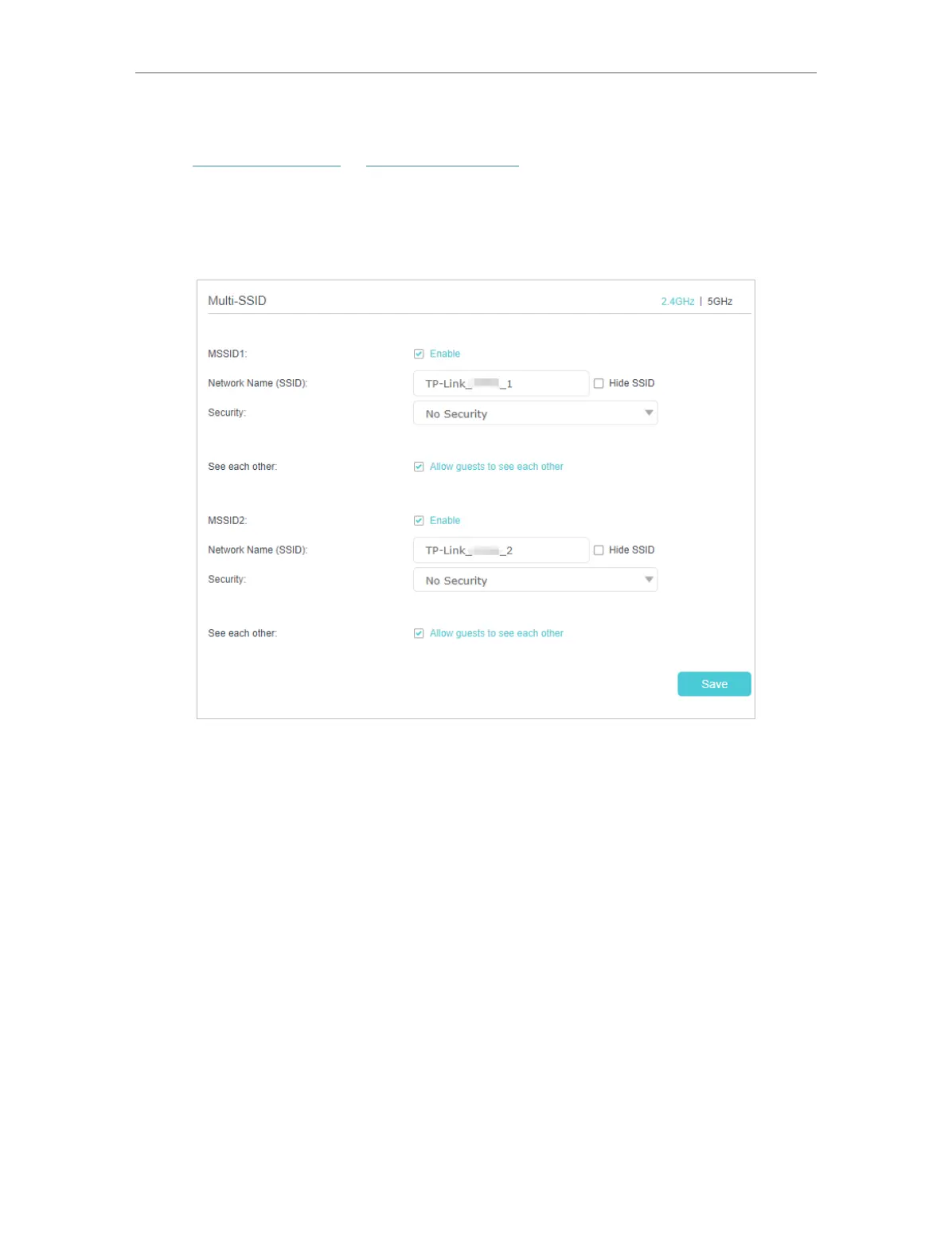 2. Go to Basic > Multi-SSID or Advanced > Wireless > Multi-SSID.