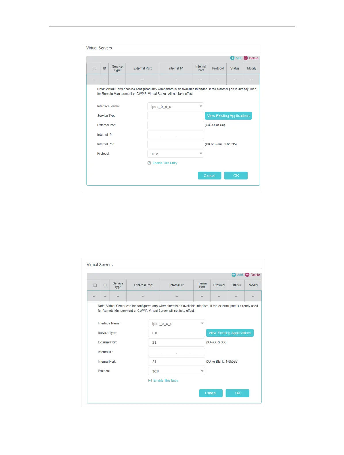 (e.g. 21-25). Leave the Internal Port blank if it is the same as the External Port or enter