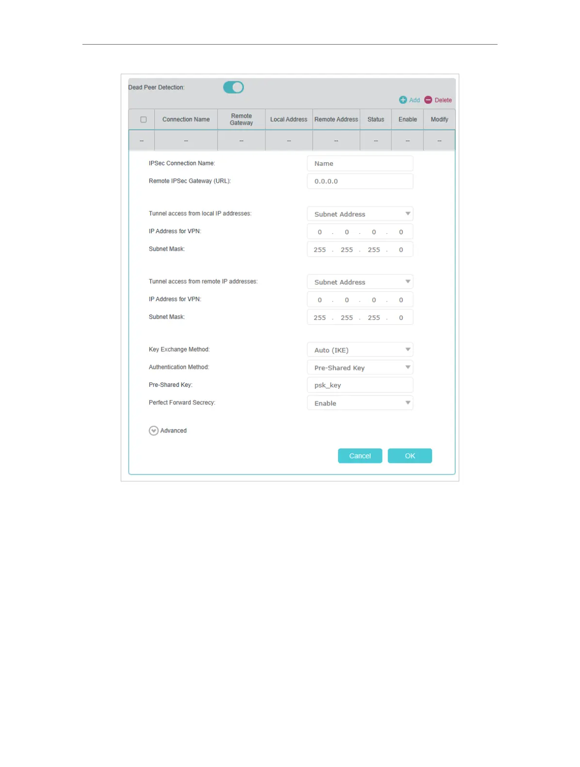 5. Configure the advanced settings according to the following explanation. We