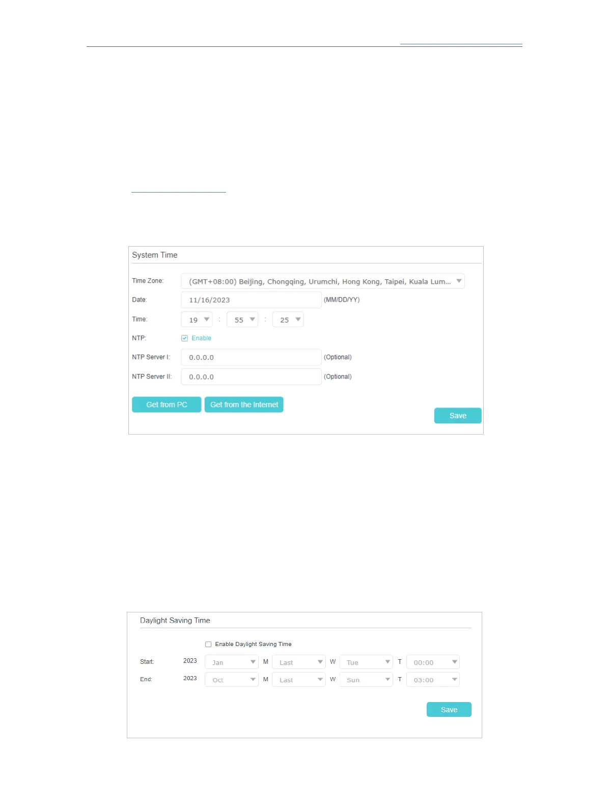 and Wireless Schedule. You can manually set how to get the system time.