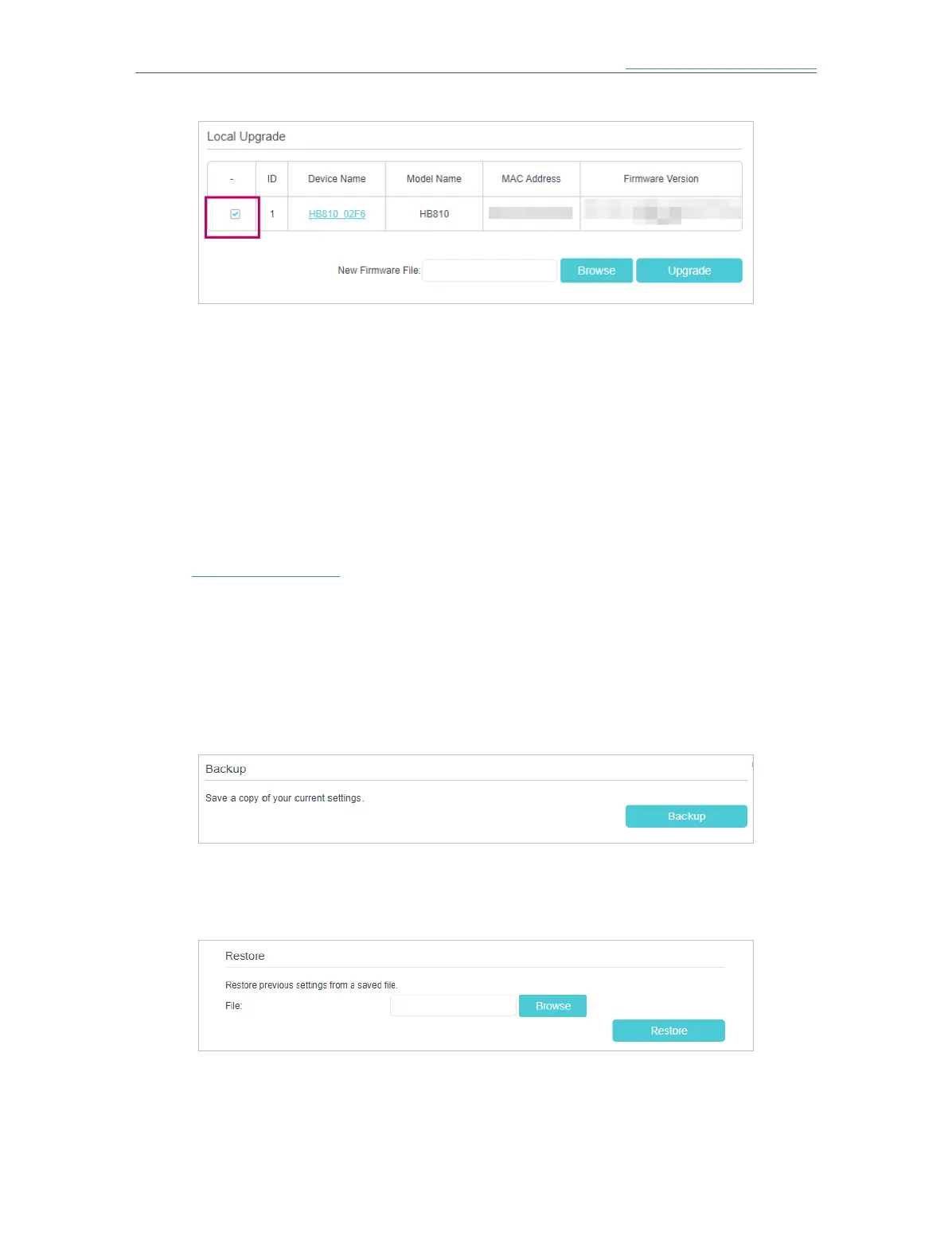 1 ) Click Browse to locate the previous backup configuration file, and click Restore.