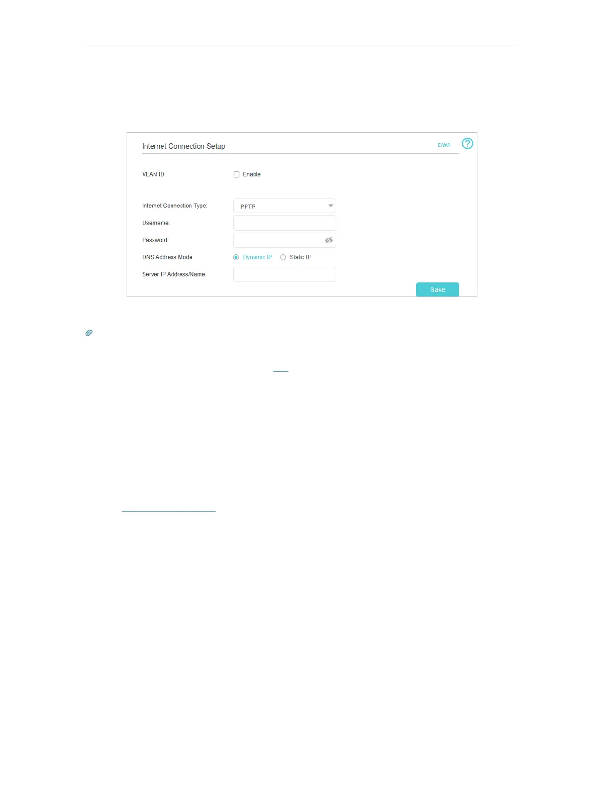 • If you use Dynamic IP and PPPoE and you are provided with any other parameters that are not required on the page,