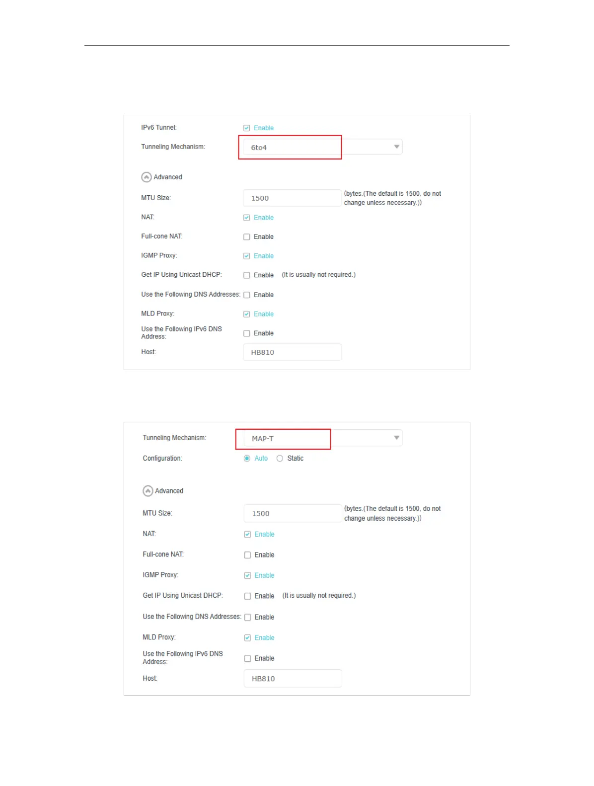 4 ) MAP-T: Fill in blanks and click OK. Select this tunneling mechanism if your ISP