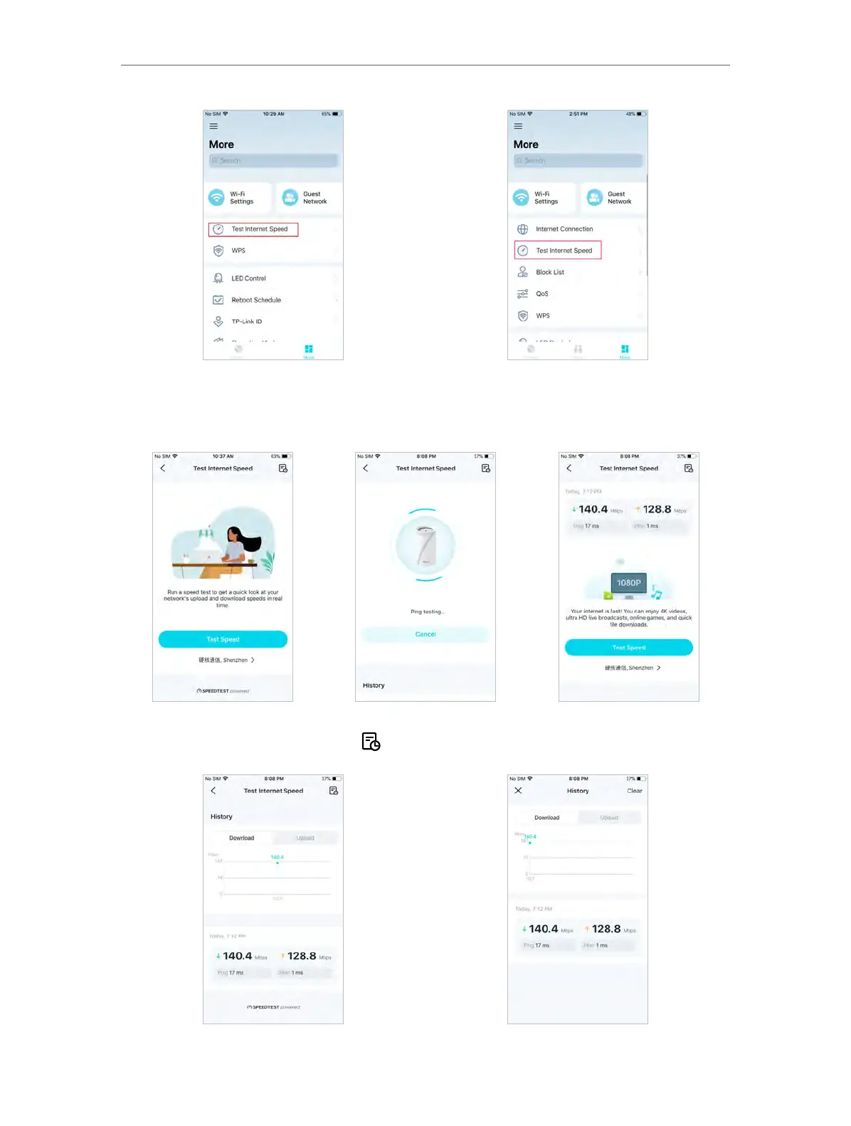 3. Scroll screen to History or tap to view speed testing history.