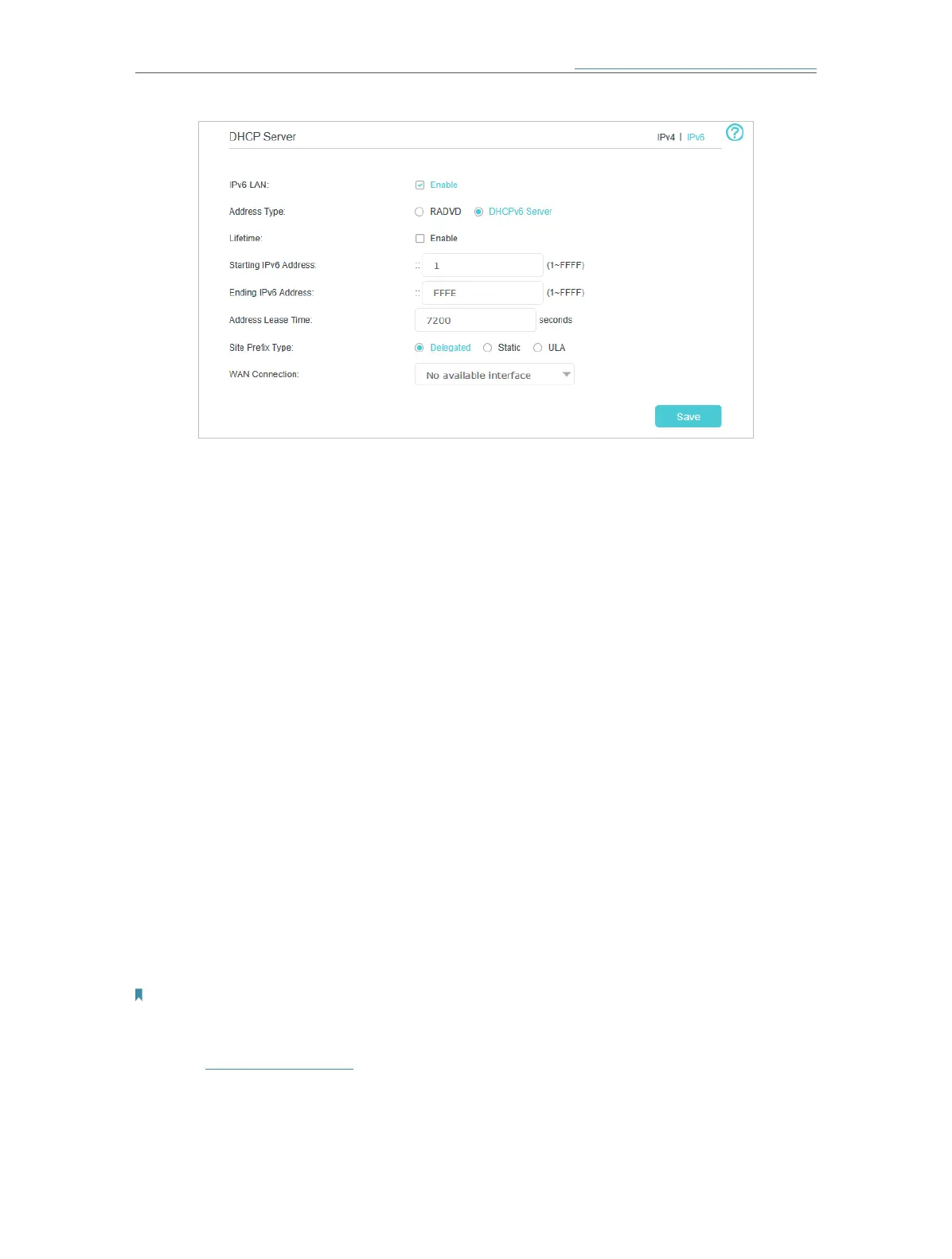 1 ) Select DHCPv6 Server as the address type to make the mesh device assign