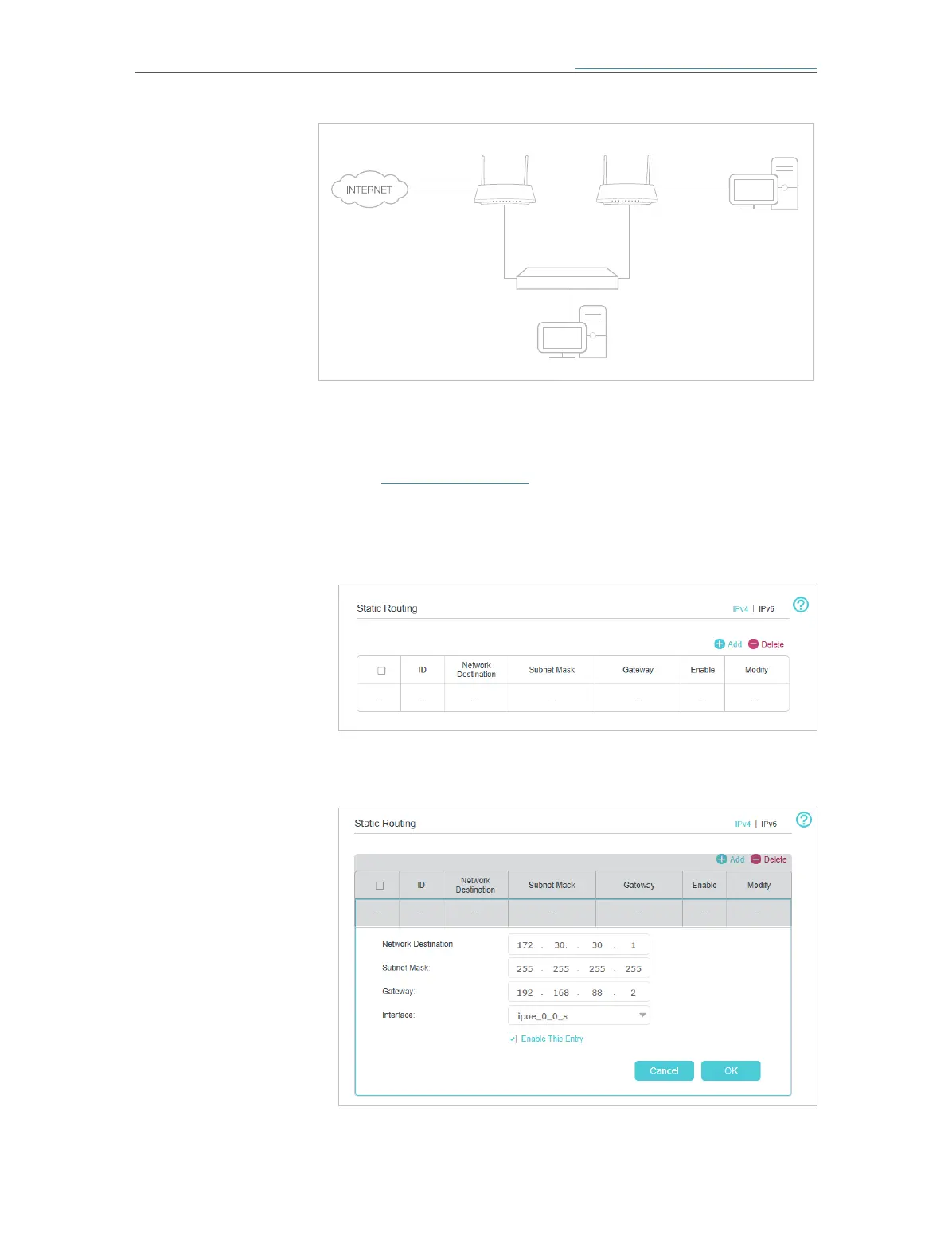 4. Click Add to add a new static routing entry. Finish the settings
