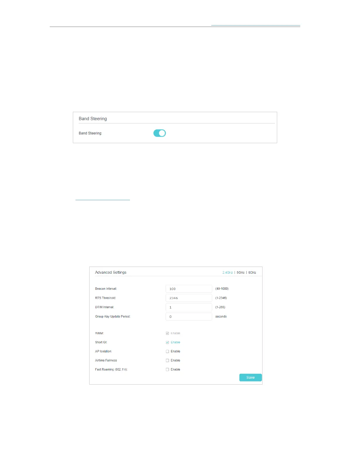 2. Locate the Band Steering section, select the Enable check box to make the settings