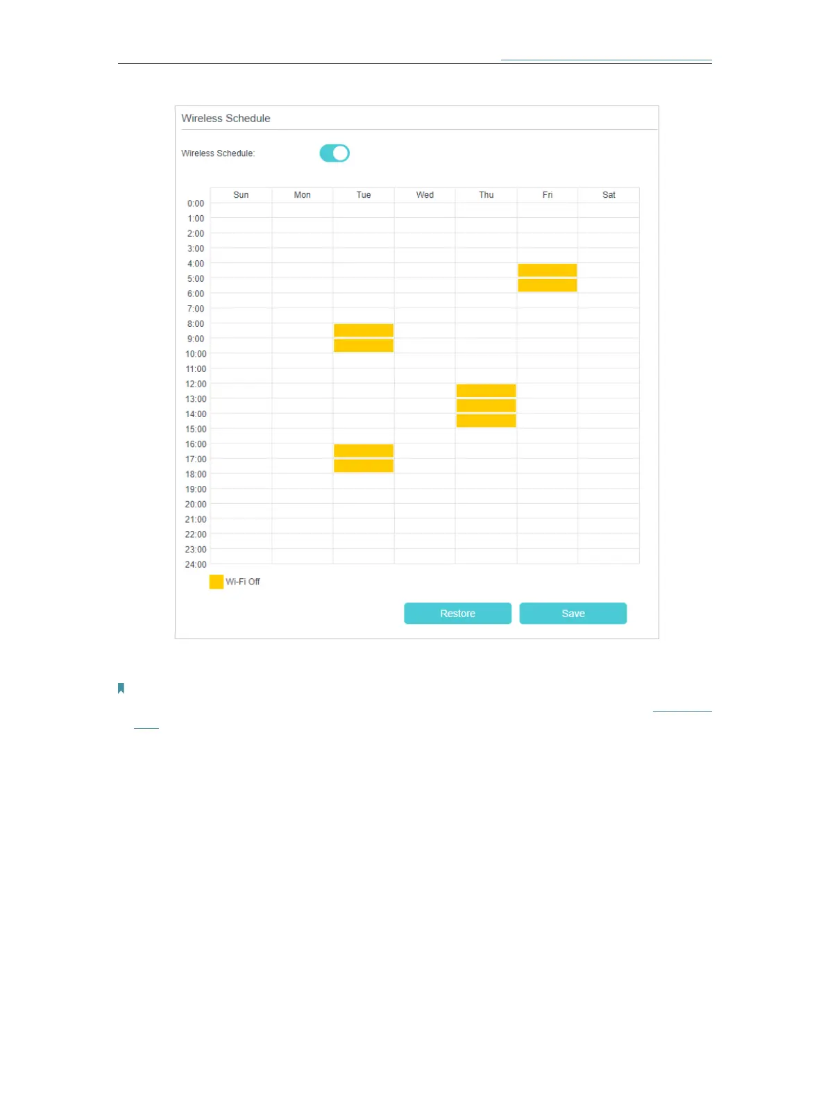 TimeThe wireless network will be automatically turned on after the time period you set.