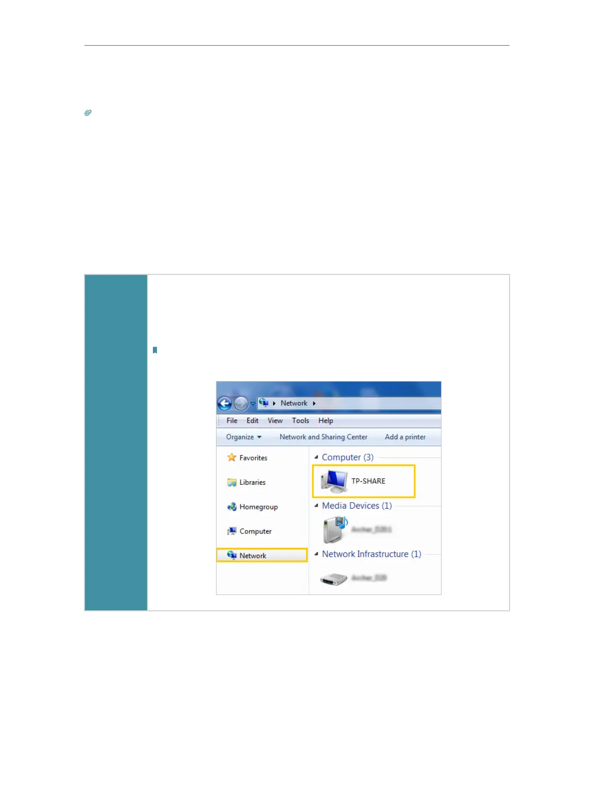 Go to Computer > Network, then click the Network Server Name (TP-