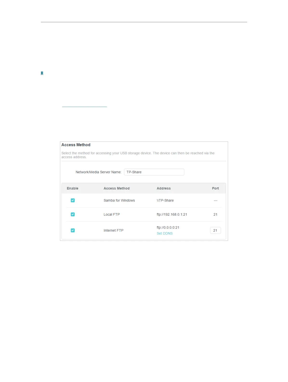 4. Refer to the following table to access your USB disk remotely.