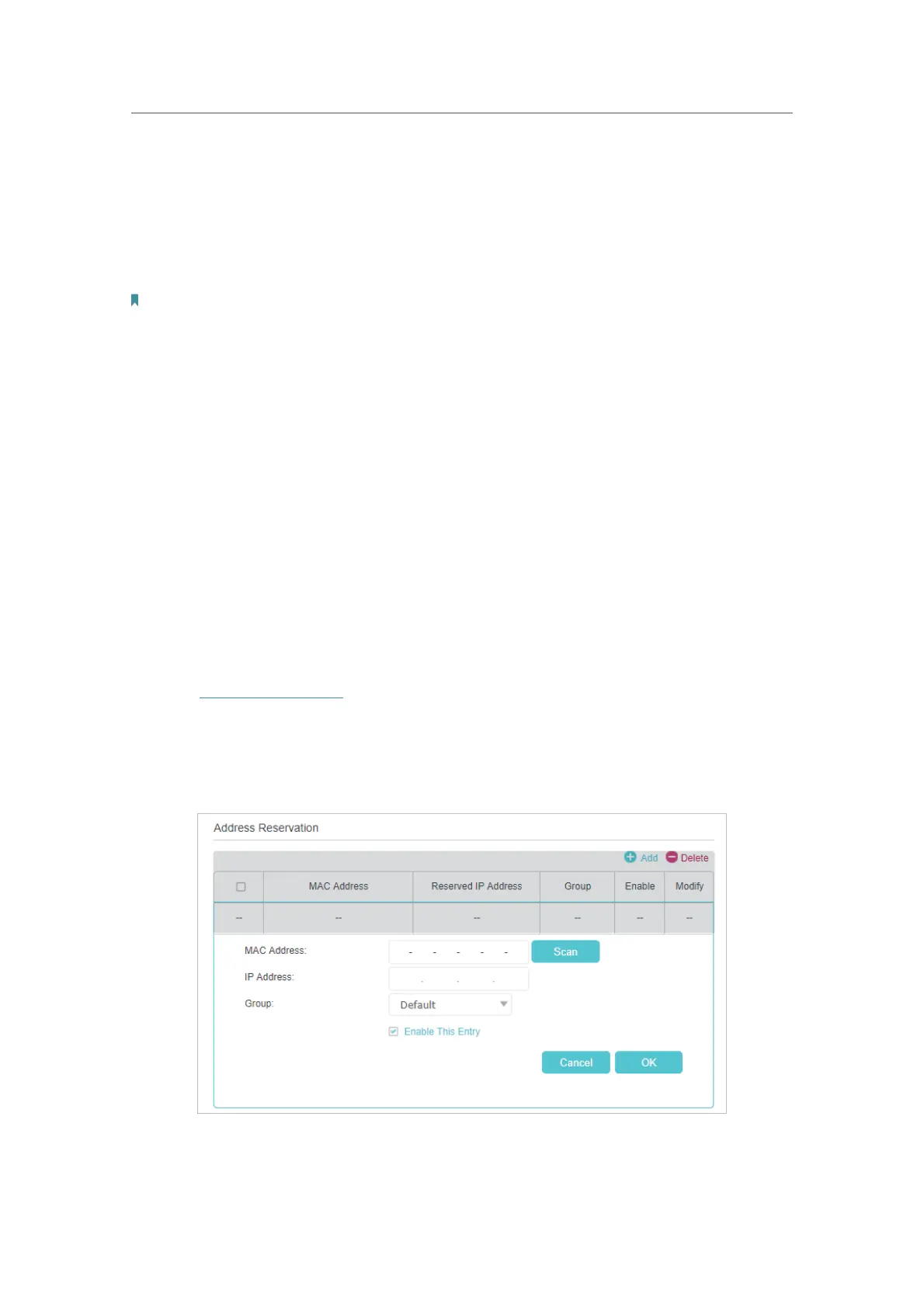 3. Scroll down to locate the Address Reservation table and click Add to add an address