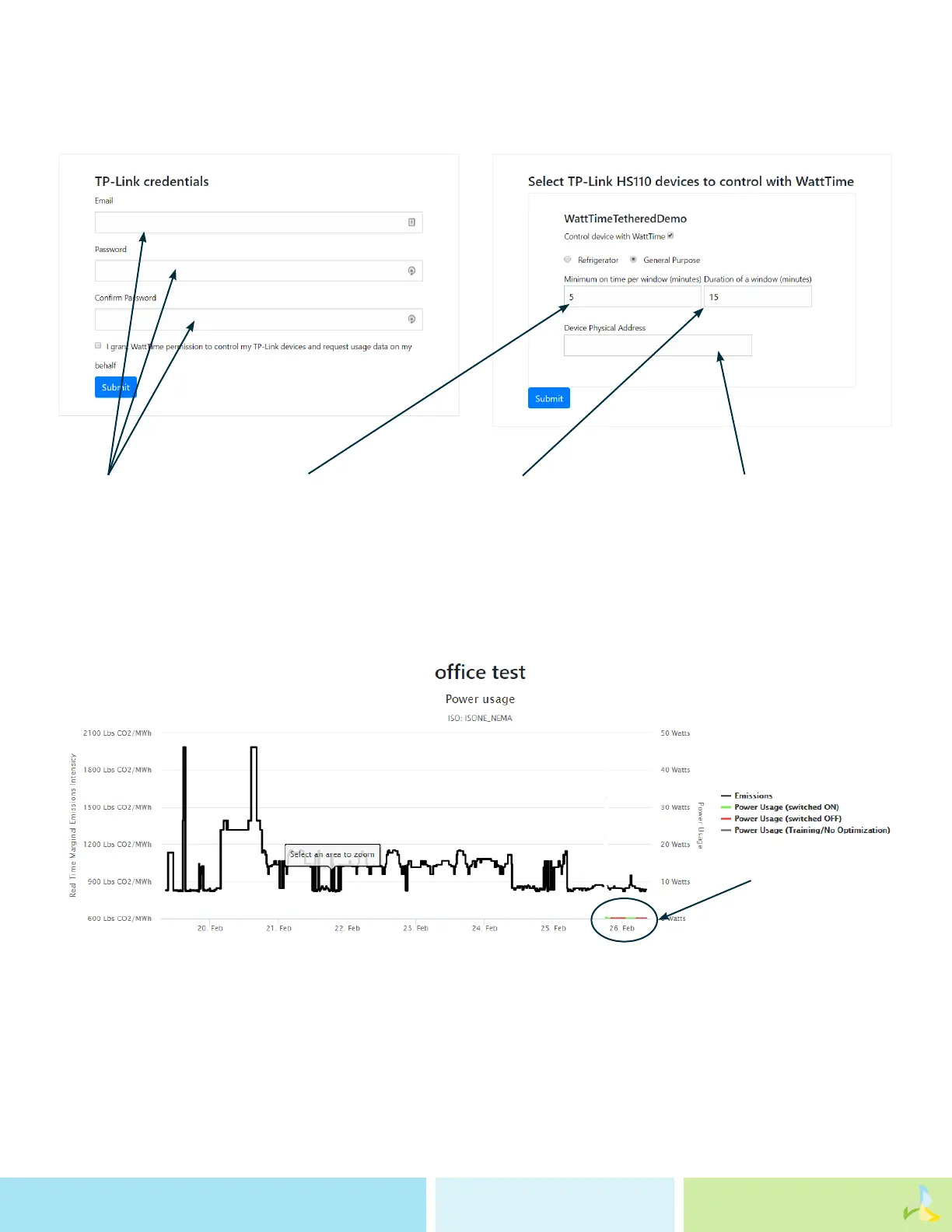a condensed look at when the device turned on and o in response to the grid emissions via the green and red bars.