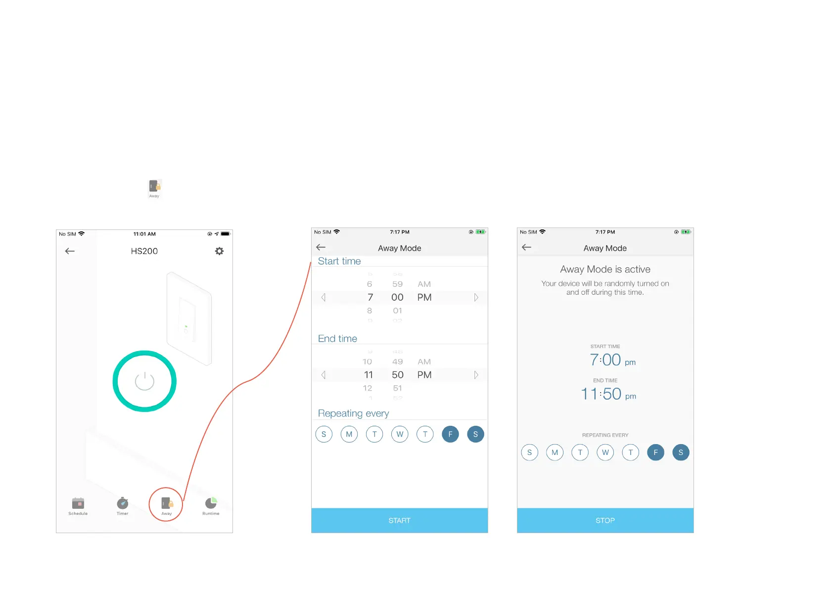 Away Mode: Set Away Mode for your Smart Light Switch to turn on/o the light automatically at random