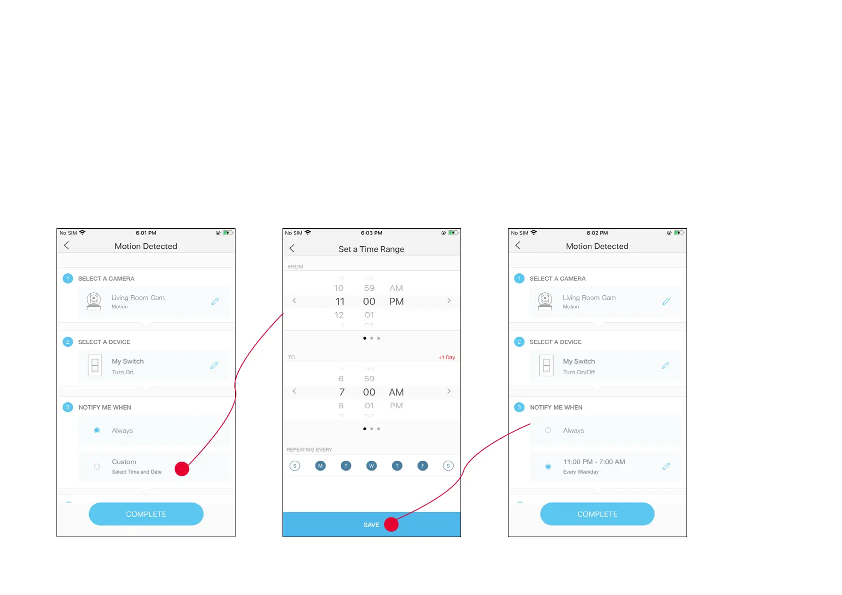 For example: I want the motion to trigger the light on from 11:00 PM to 7:00 AM every day.