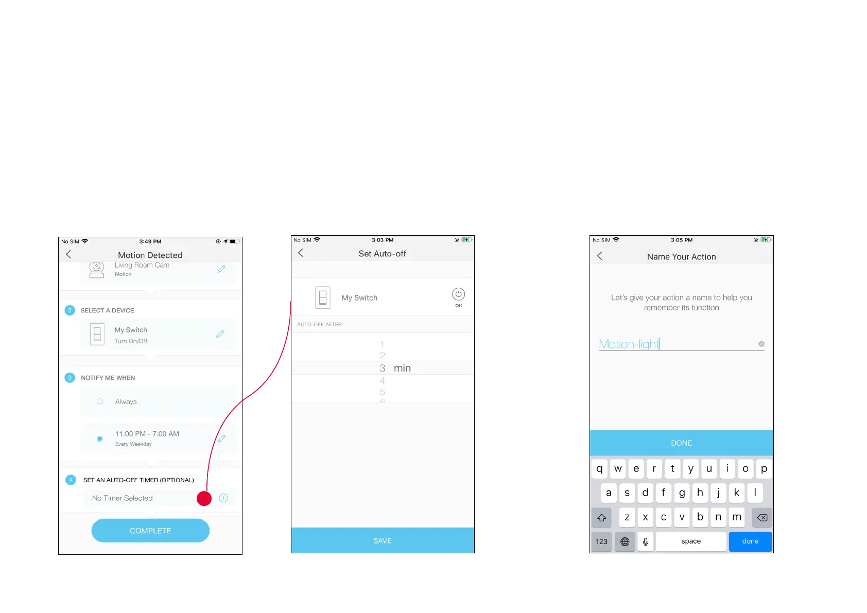4. (Optional) Set an auto-o timer then tap COMPLETE. Then your living room light will