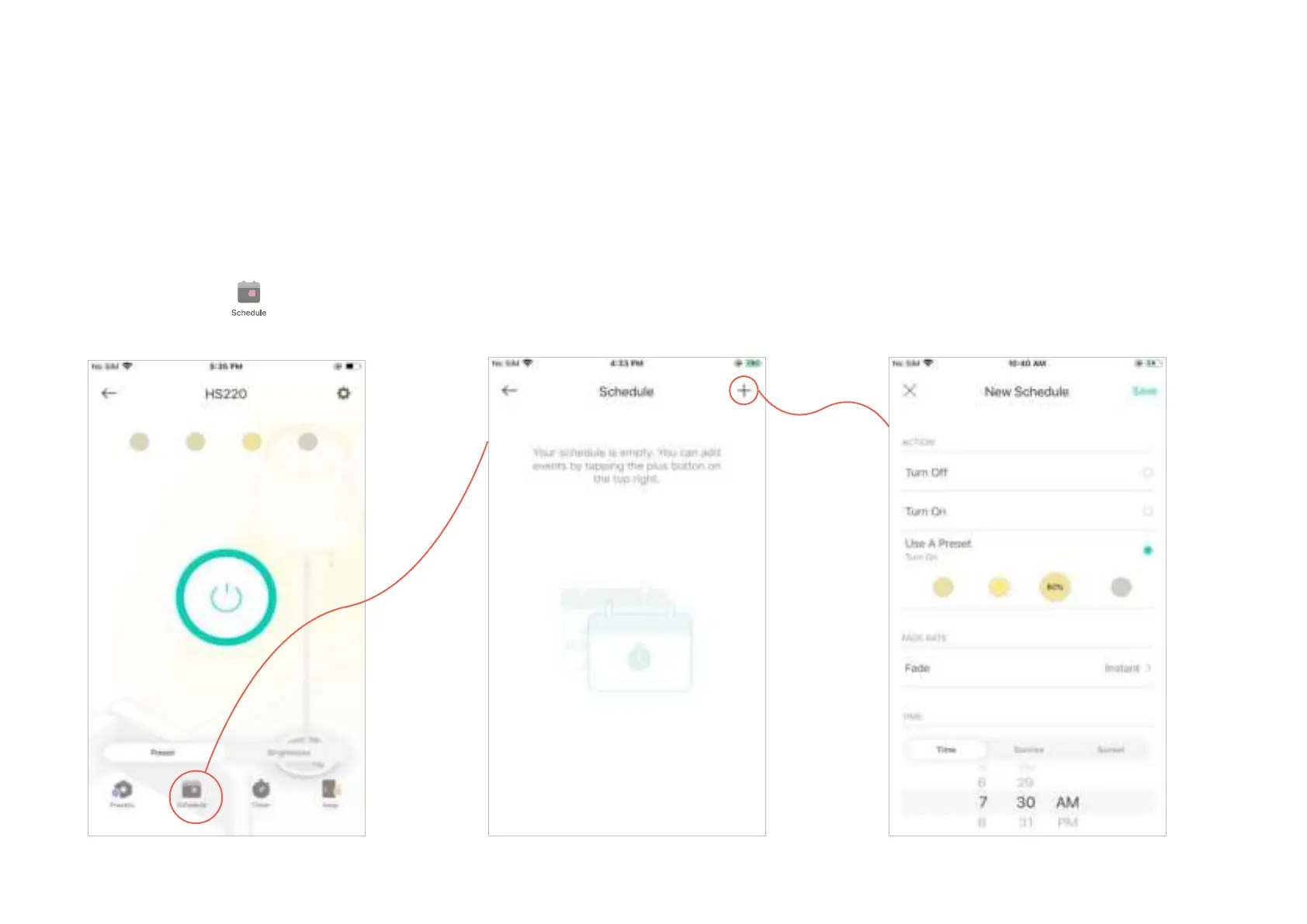 Set schedules to automatically turn on/o the light or apply a preset at set times according to