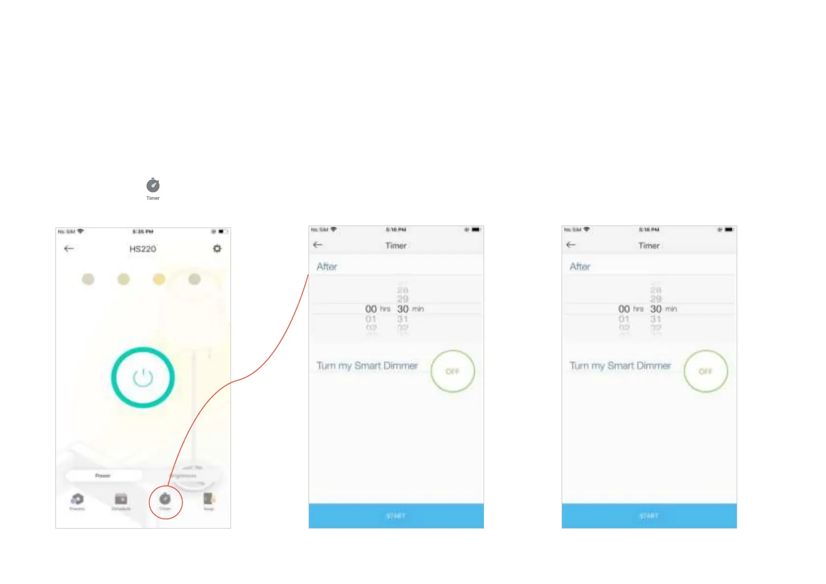 Set the timer for your Smart Dimmer to automatically turn on/o after the time ends.