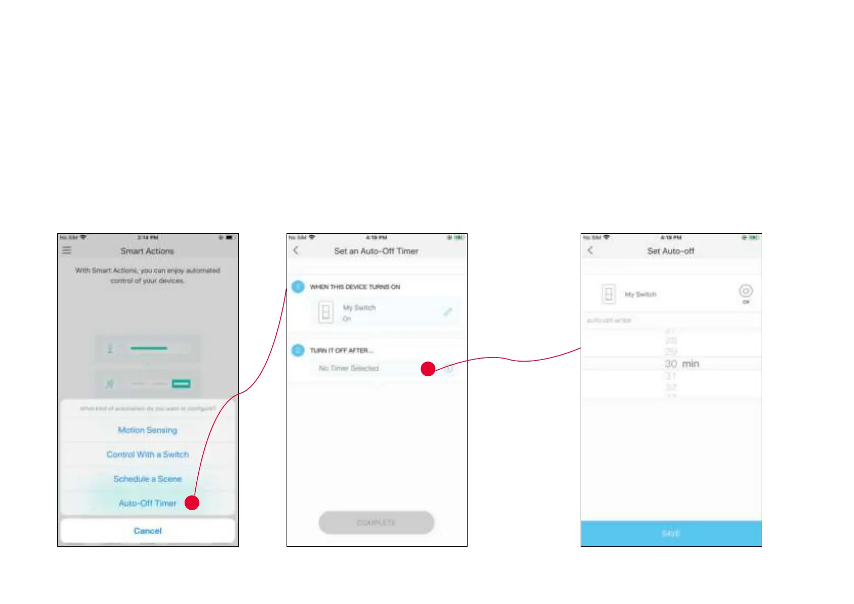 1. Tap Auto-O Timer then select a device. 2. Set the time.