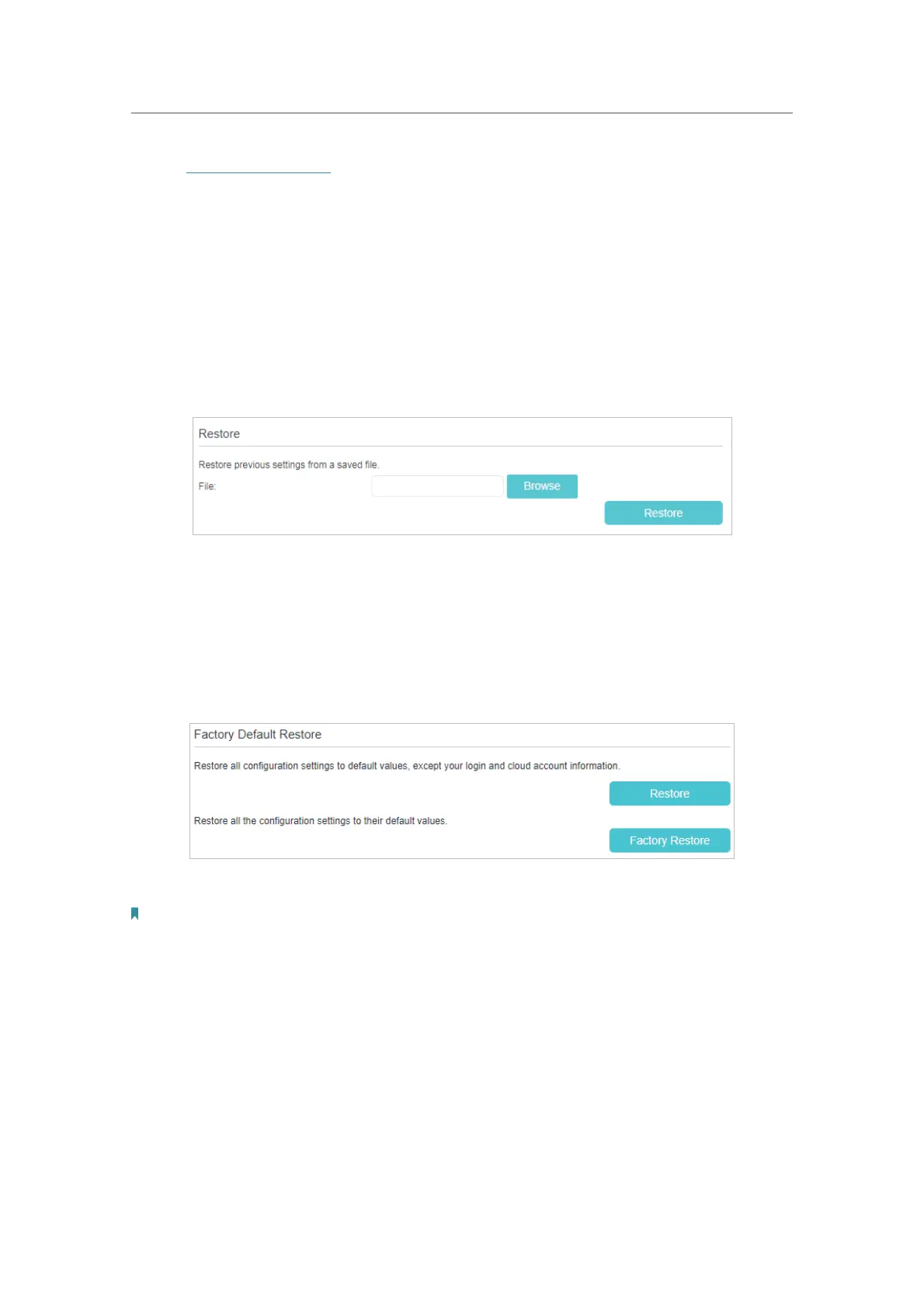 Factory Restore to restore all the configuration settings to their default values.