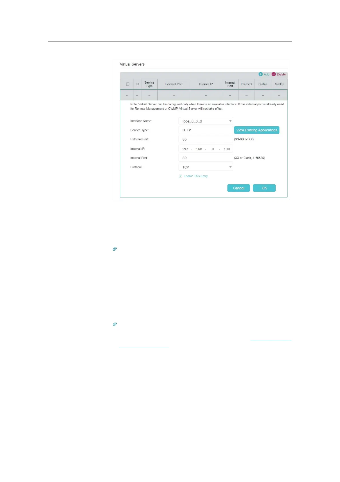 1. It is recommended to keep the default settings of Internal Port and Protocol