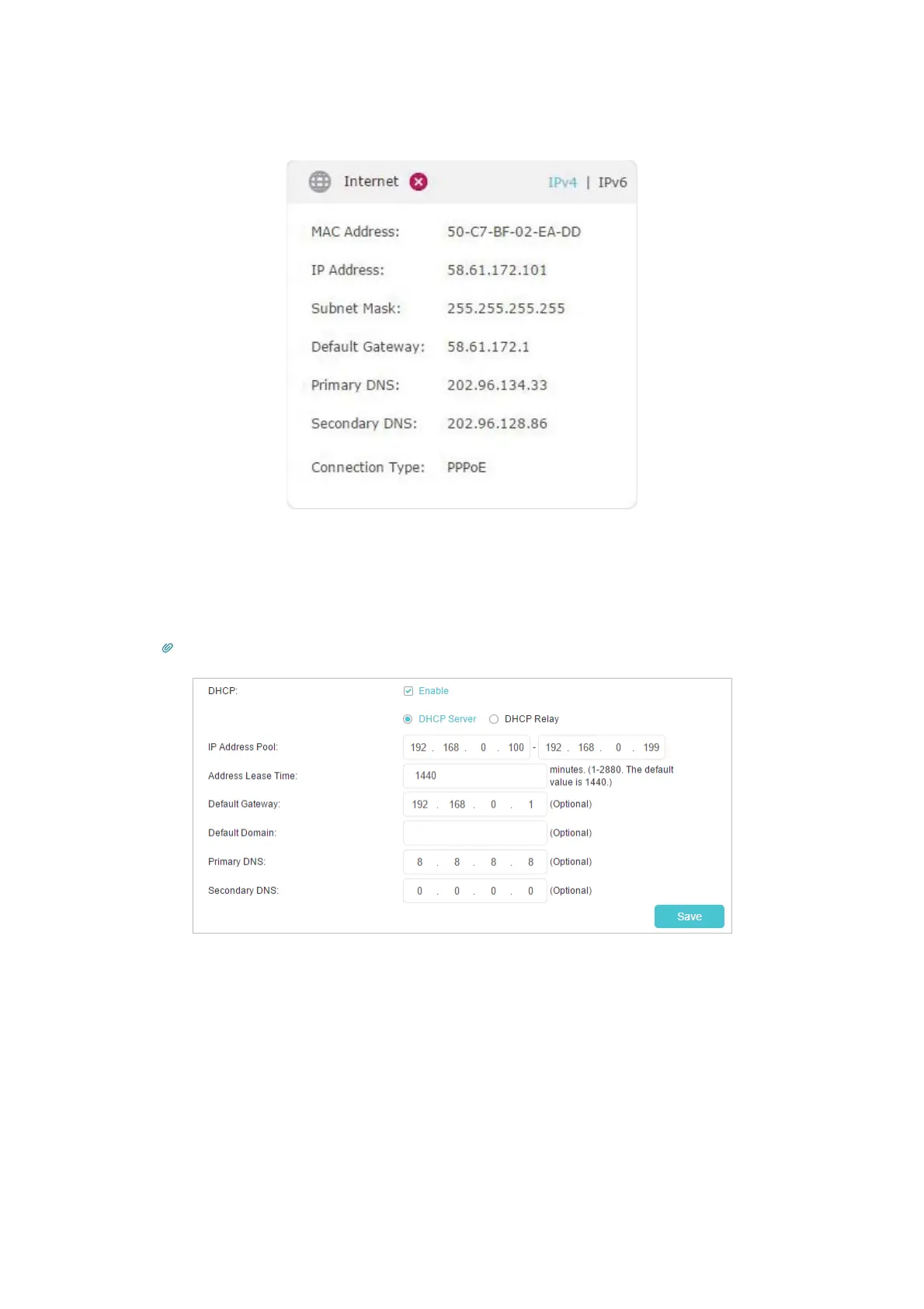 Advanced > Network > LAN Settings, and locate the DHCP section.
