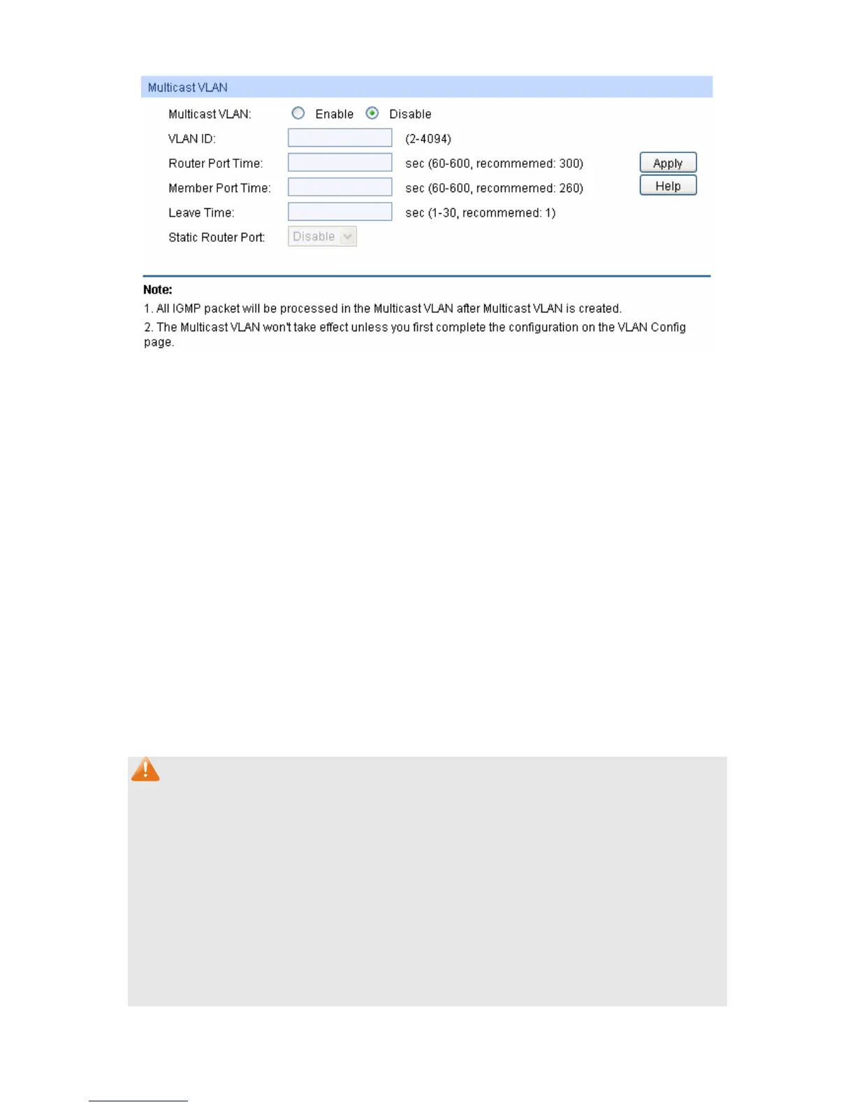2. The Multicast VLAN won't take effect unless you first complete the configuration for the