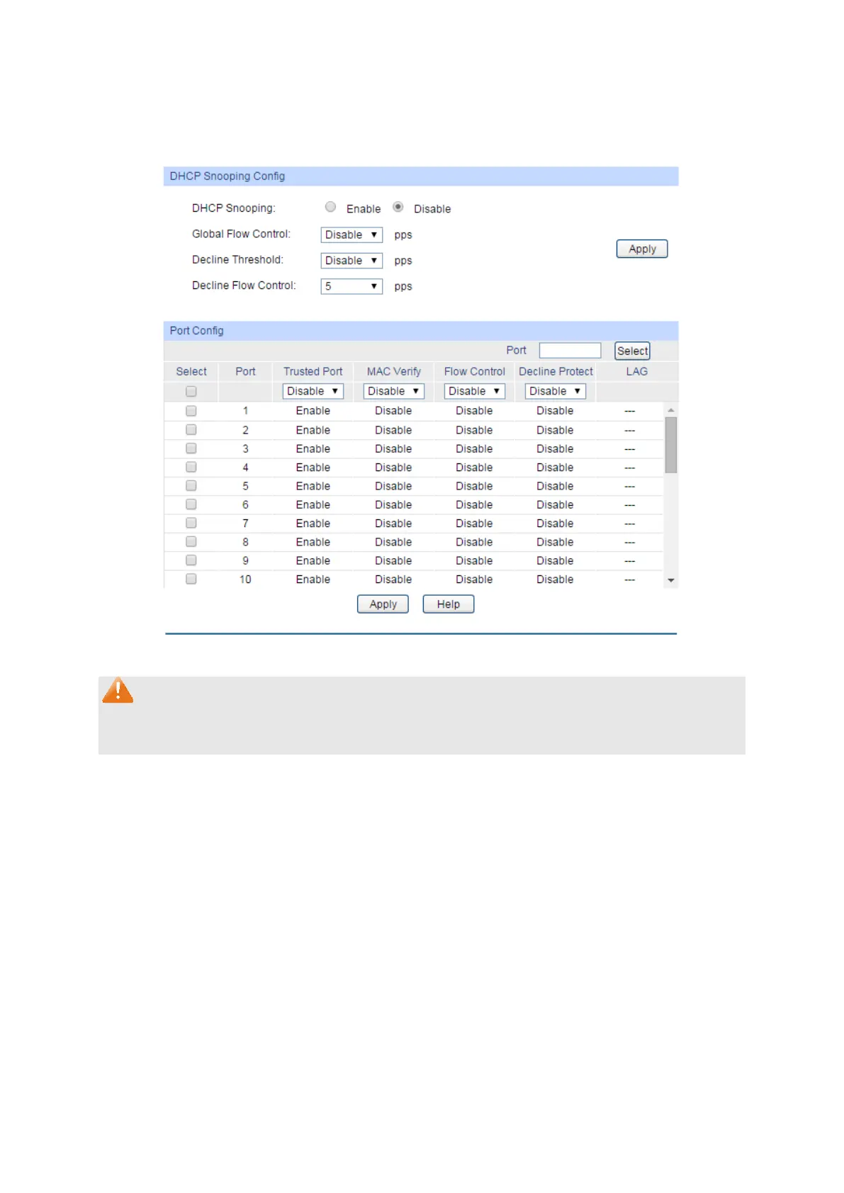 If you want to enable the DHCP Snooping feature for the member port of LAG, please ensure the