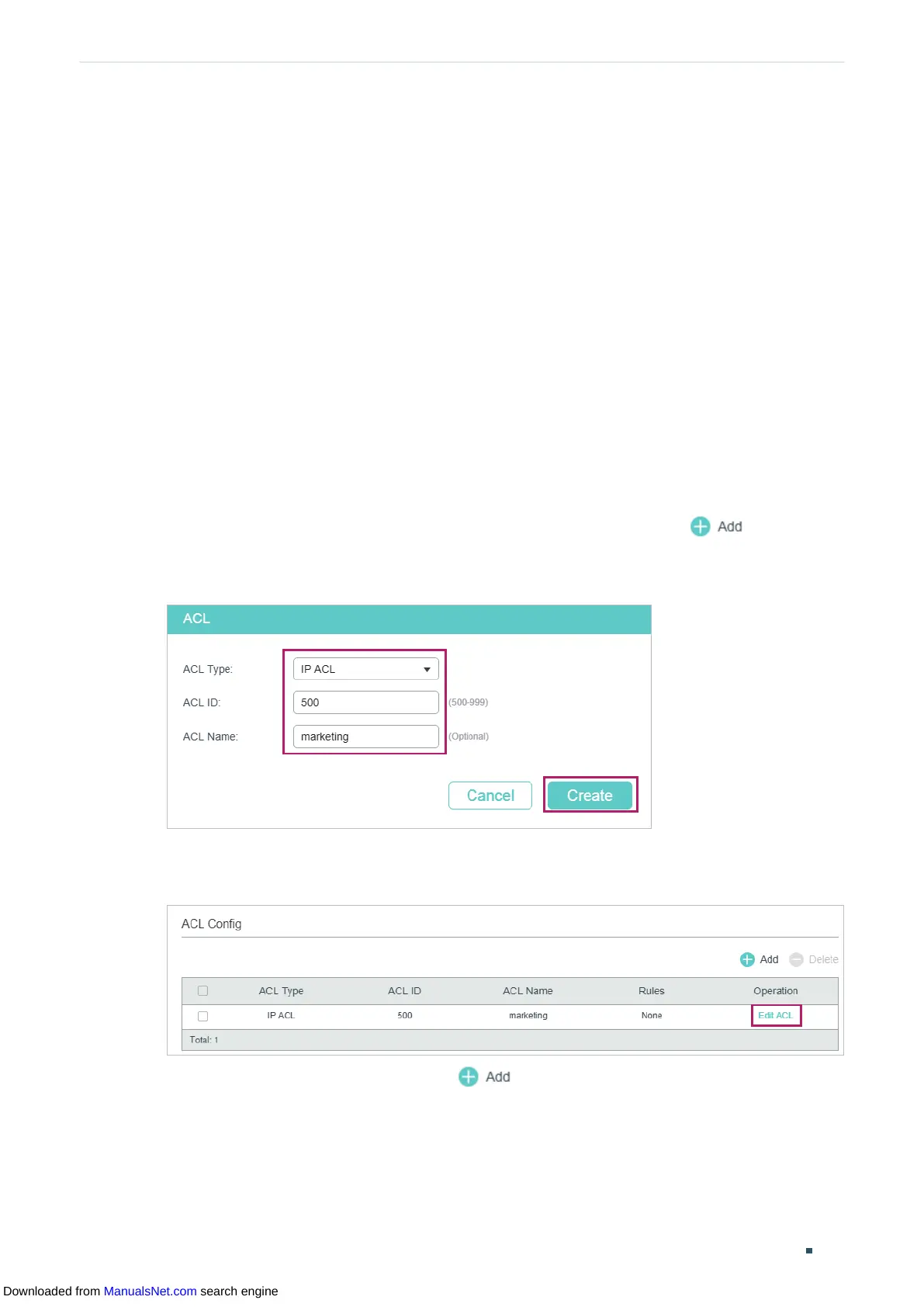 1) Choose the menu SECURITY > ACL > ACL Config and click to load the